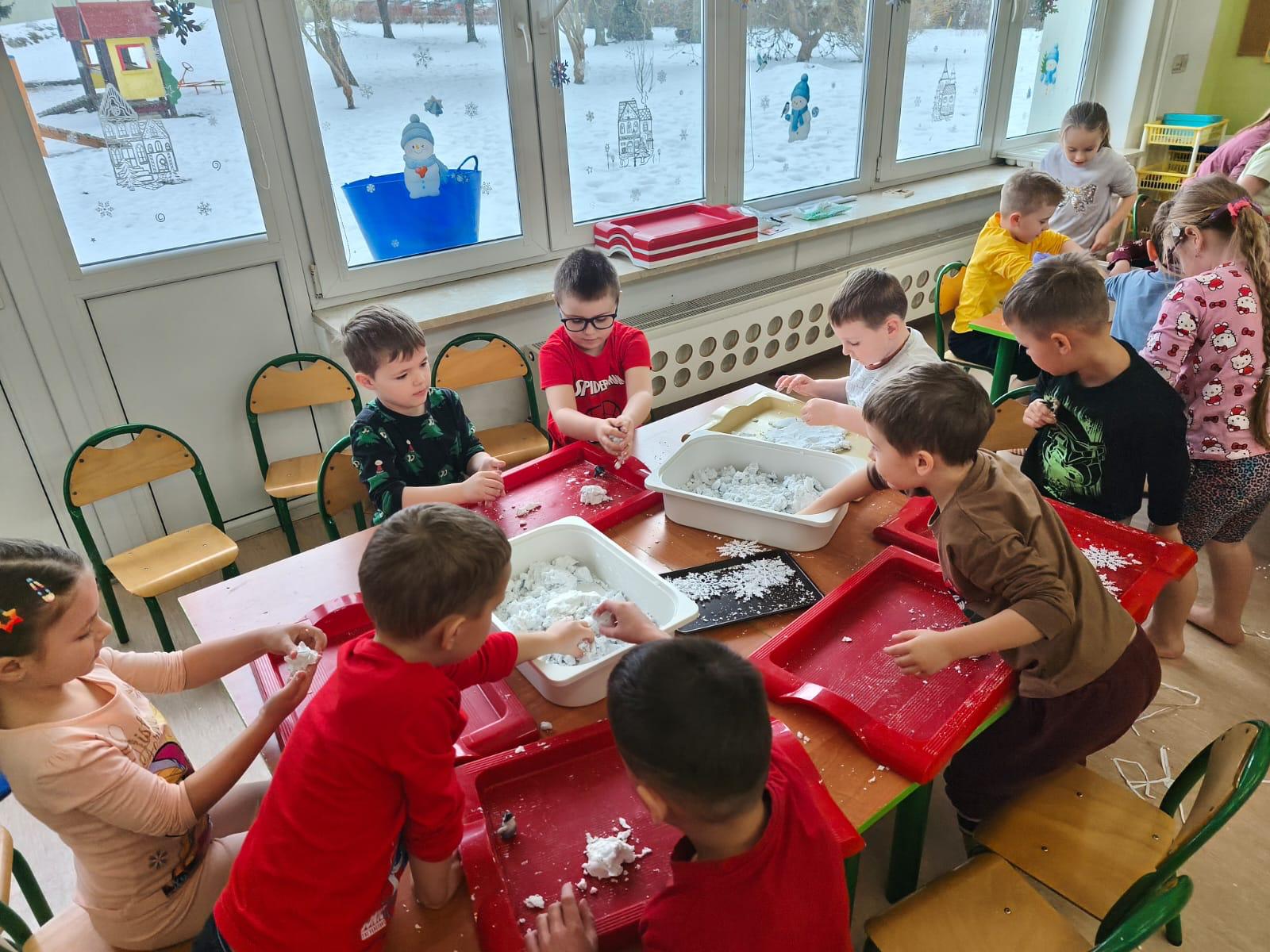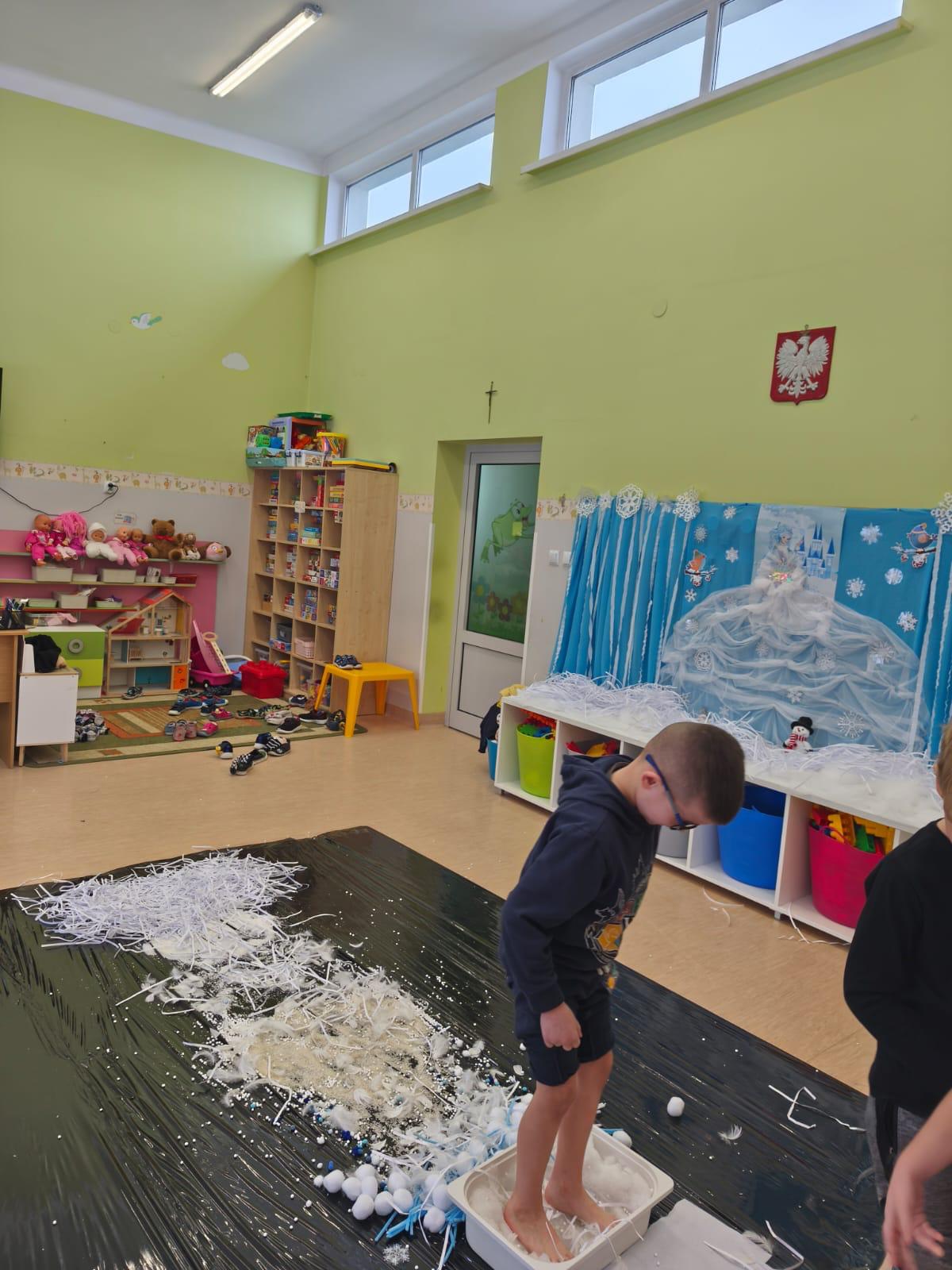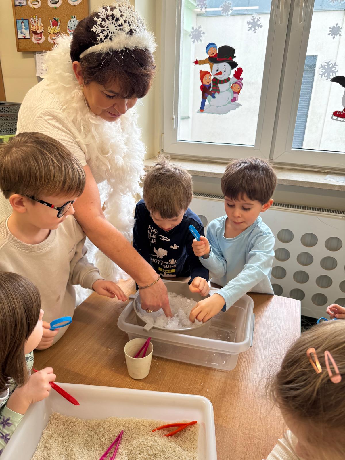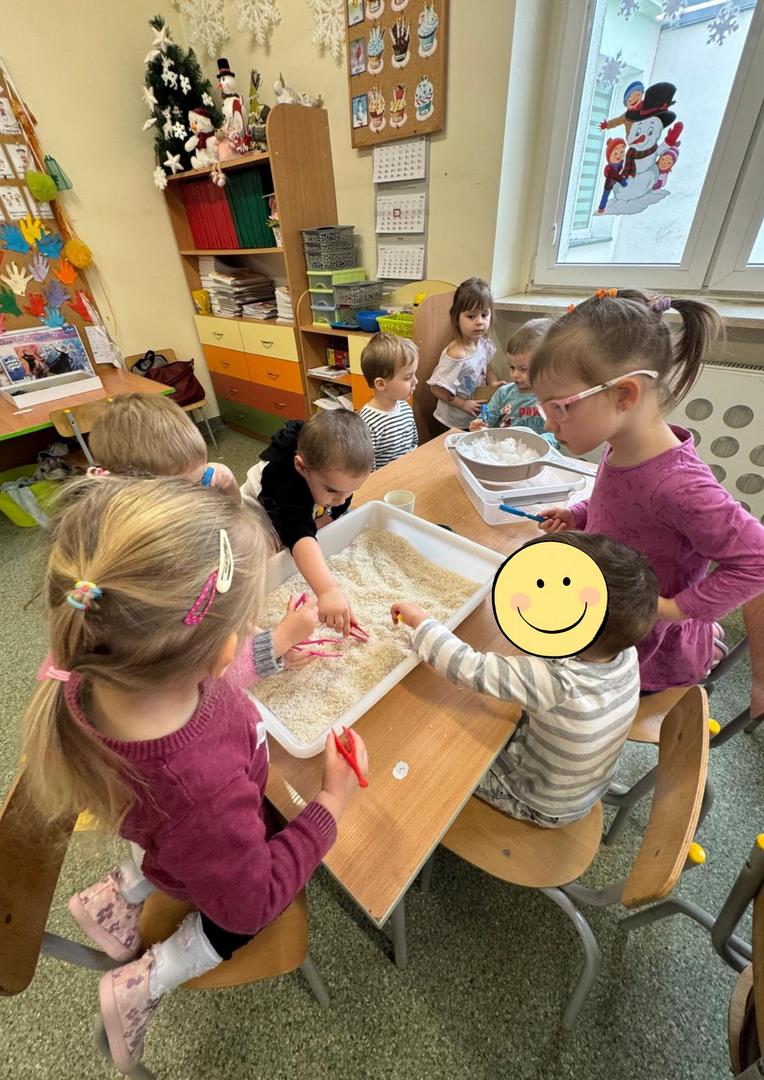 W naszym przedszkolu odbyły się kolejne, wyjątkowe zajęcia w ramach innowacji pedagogicznej o charakterze metodyczno-organizacyjnym pt. „Sensorycznie przez pory roku”. Wszystkie przedszkolaki miały okazję w niezwykle angażujący sposób poznawać uroki zimy – i to dosłownie każdym zmysłem!