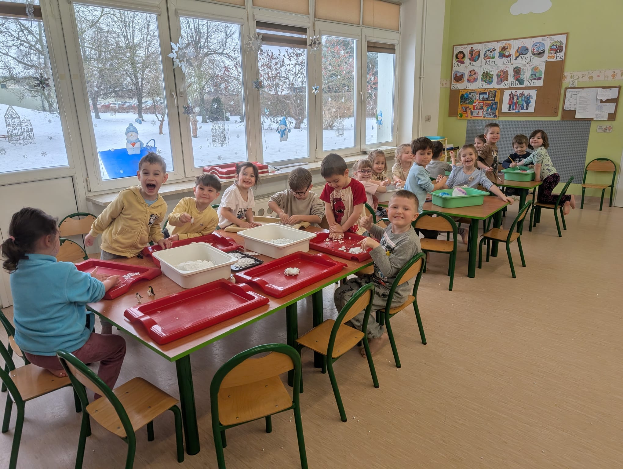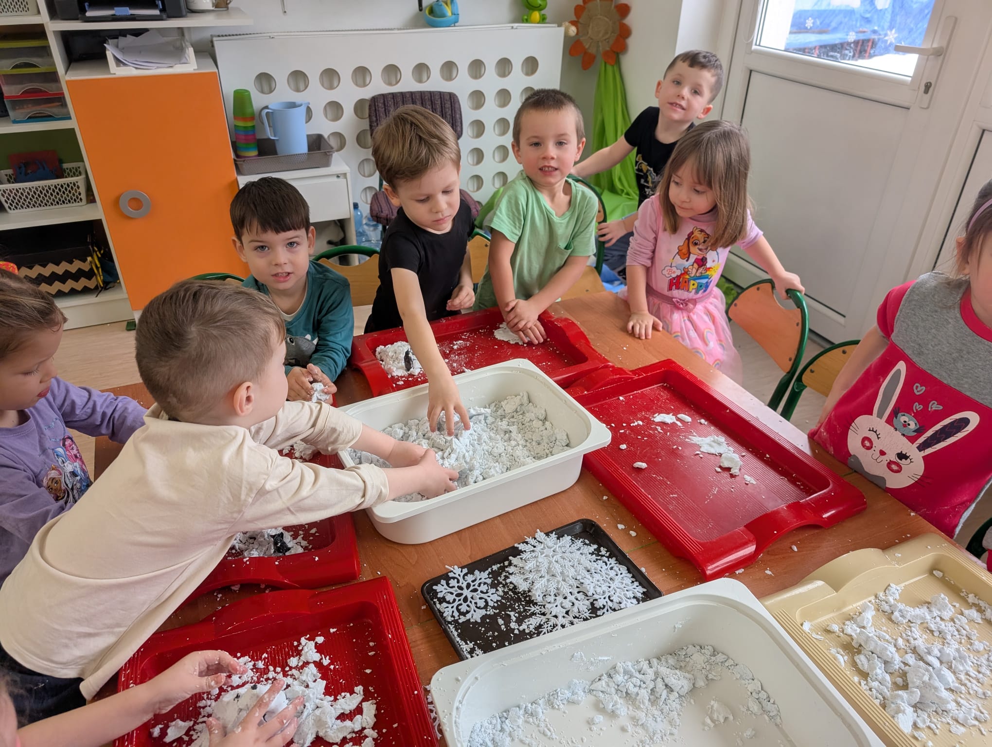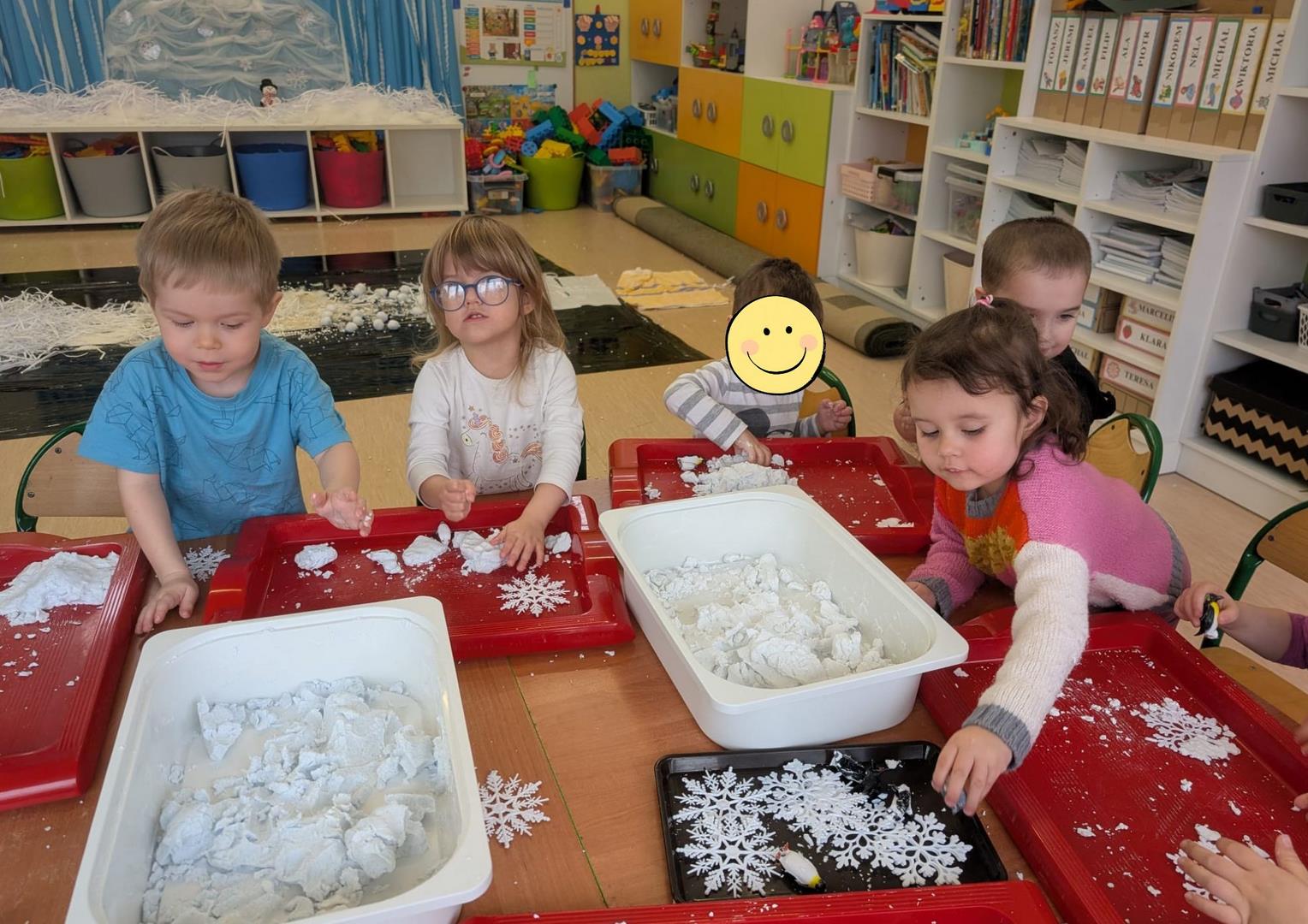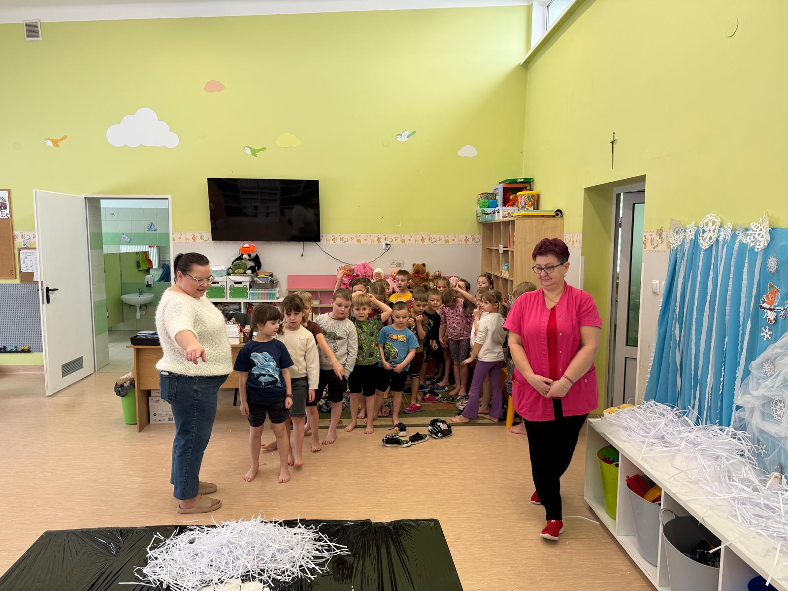 W naszym przedszkolu odbyły się kolejne, wyjątkowe zajęcia w ramach innowacji pedagogicznej o charakterze metodyczno-organizacyjnym pt. „Sensorycznie przez pory roku”. Wszystkie przedszkolaki miały okazję w niezwykle angażujący sposób poznawać uroki zimy – i to dosłownie każdym zmysłem!