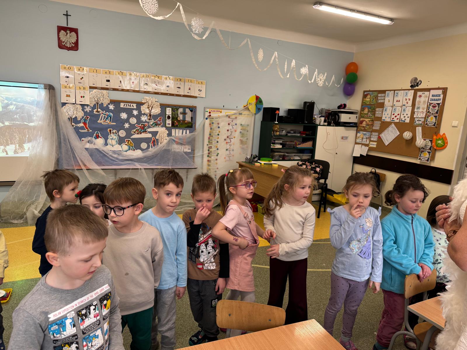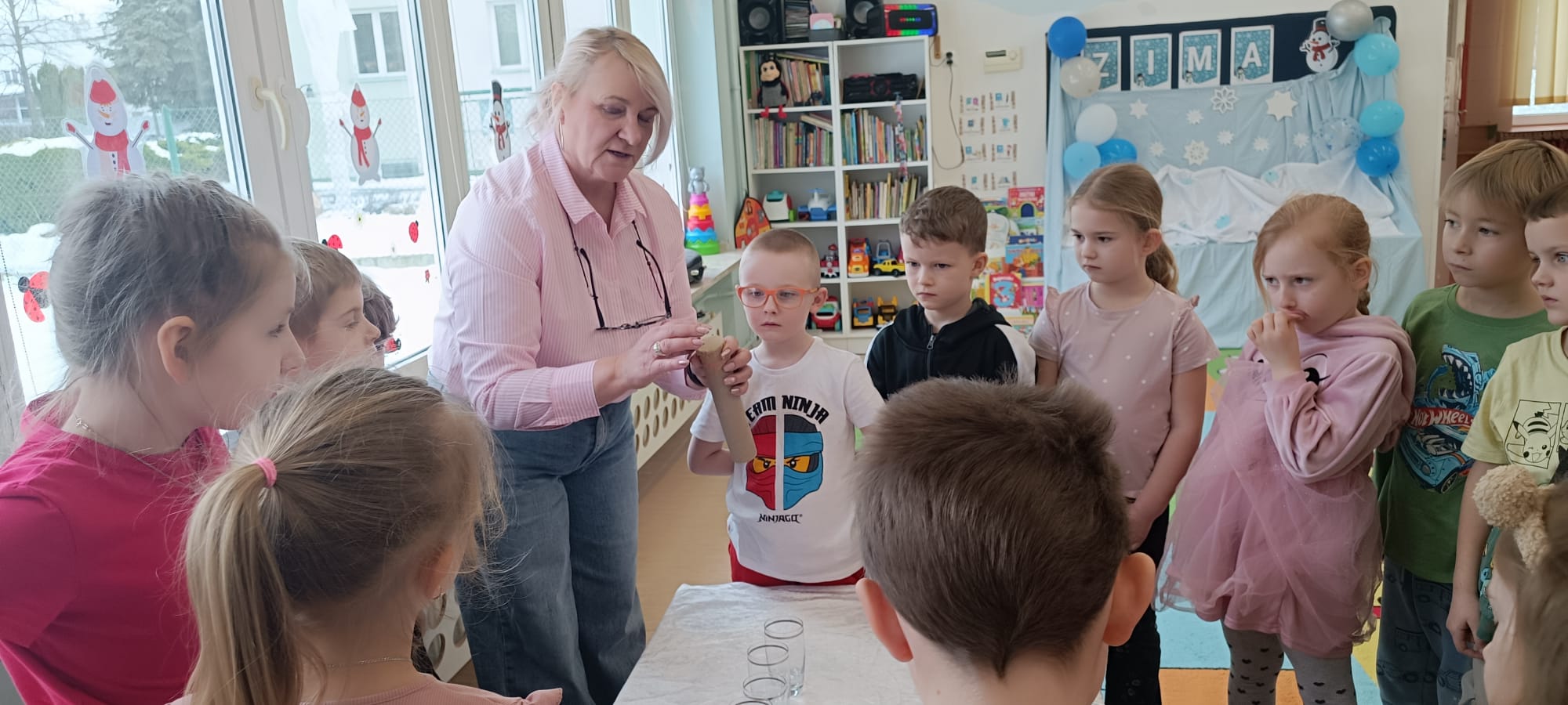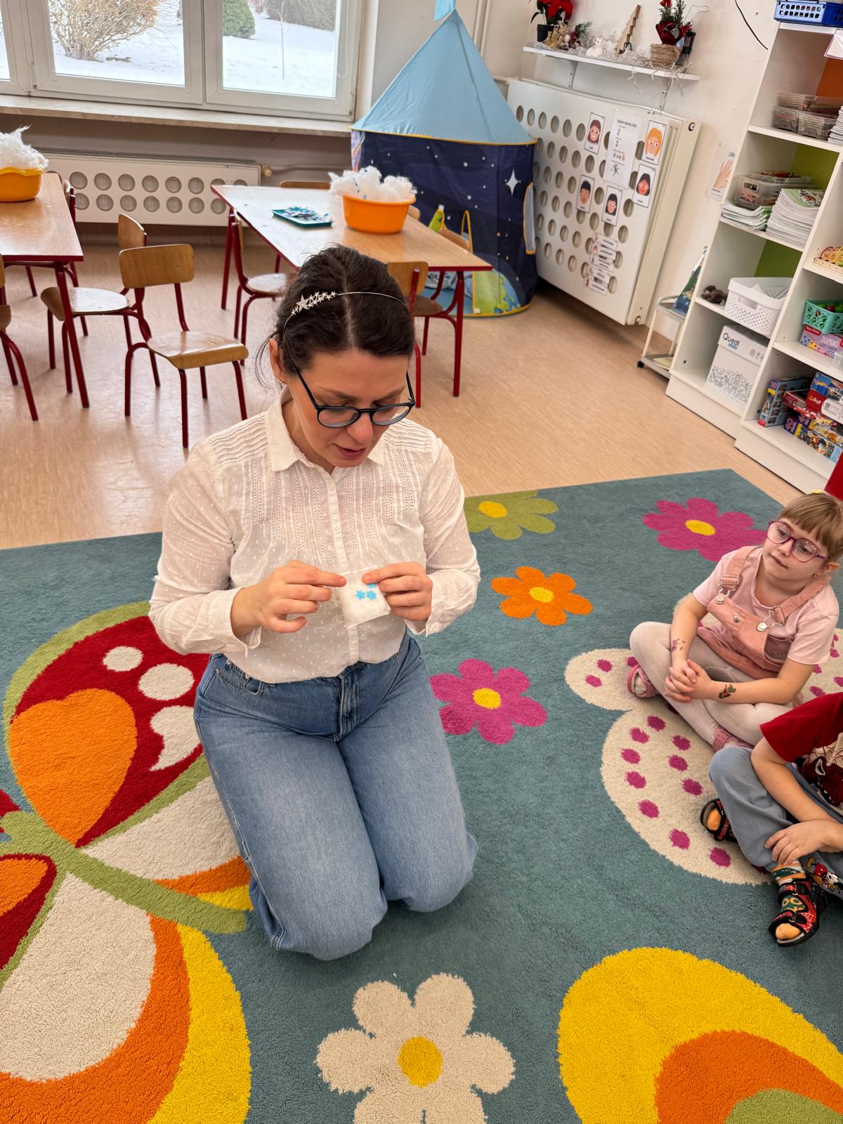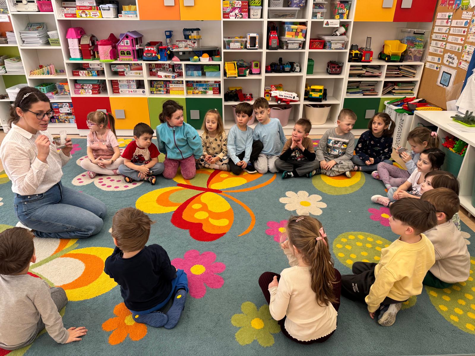 W naszym przedszkolu odbyły się kolejne, wyjątkowe zajęcia w ramach innowacji pedagogicznej o charakterze metodyczno-organizacyjnym pt. „Sensorycznie przez pory roku”. Wszystkie przedszkolaki miały okazję w niezwykle angażujący sposób poznawać uroki zimy – i to dosłownie każdym zmysłem!