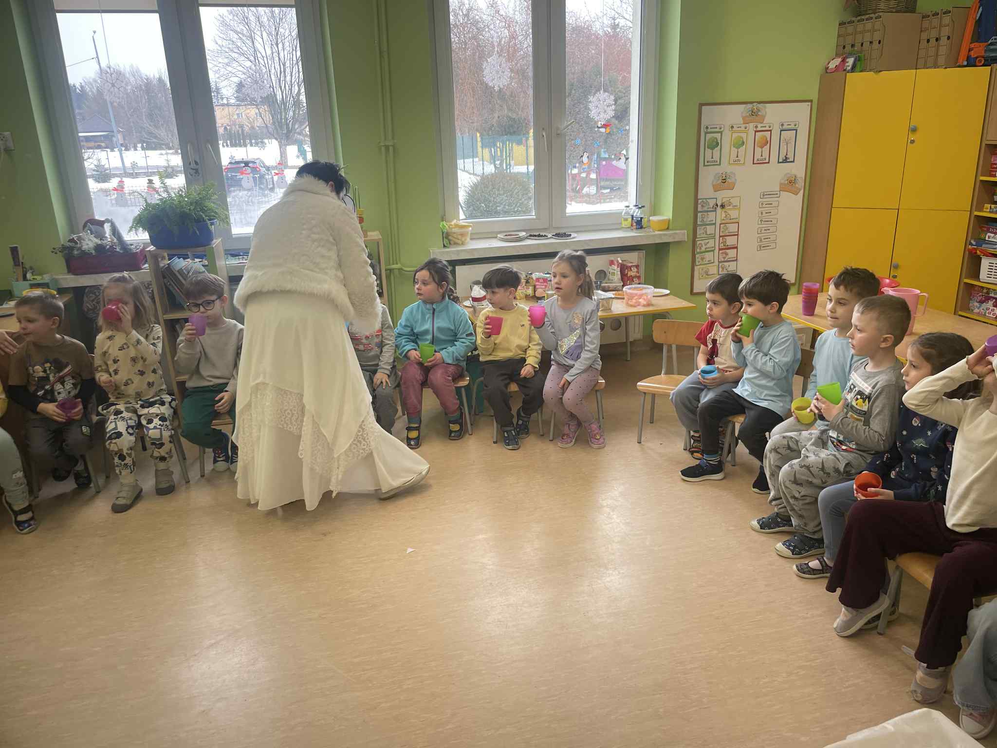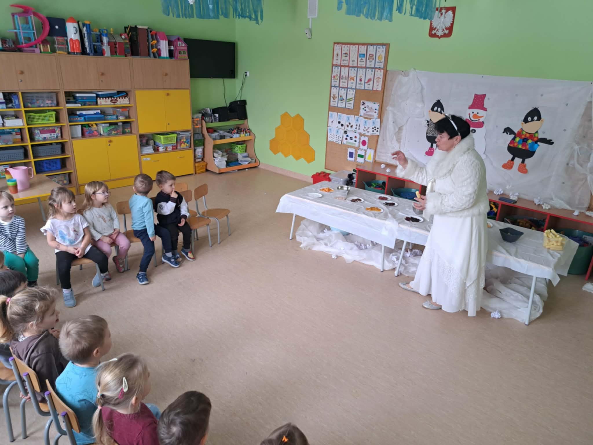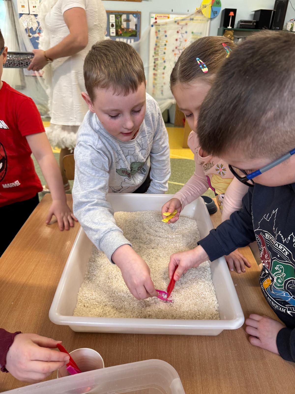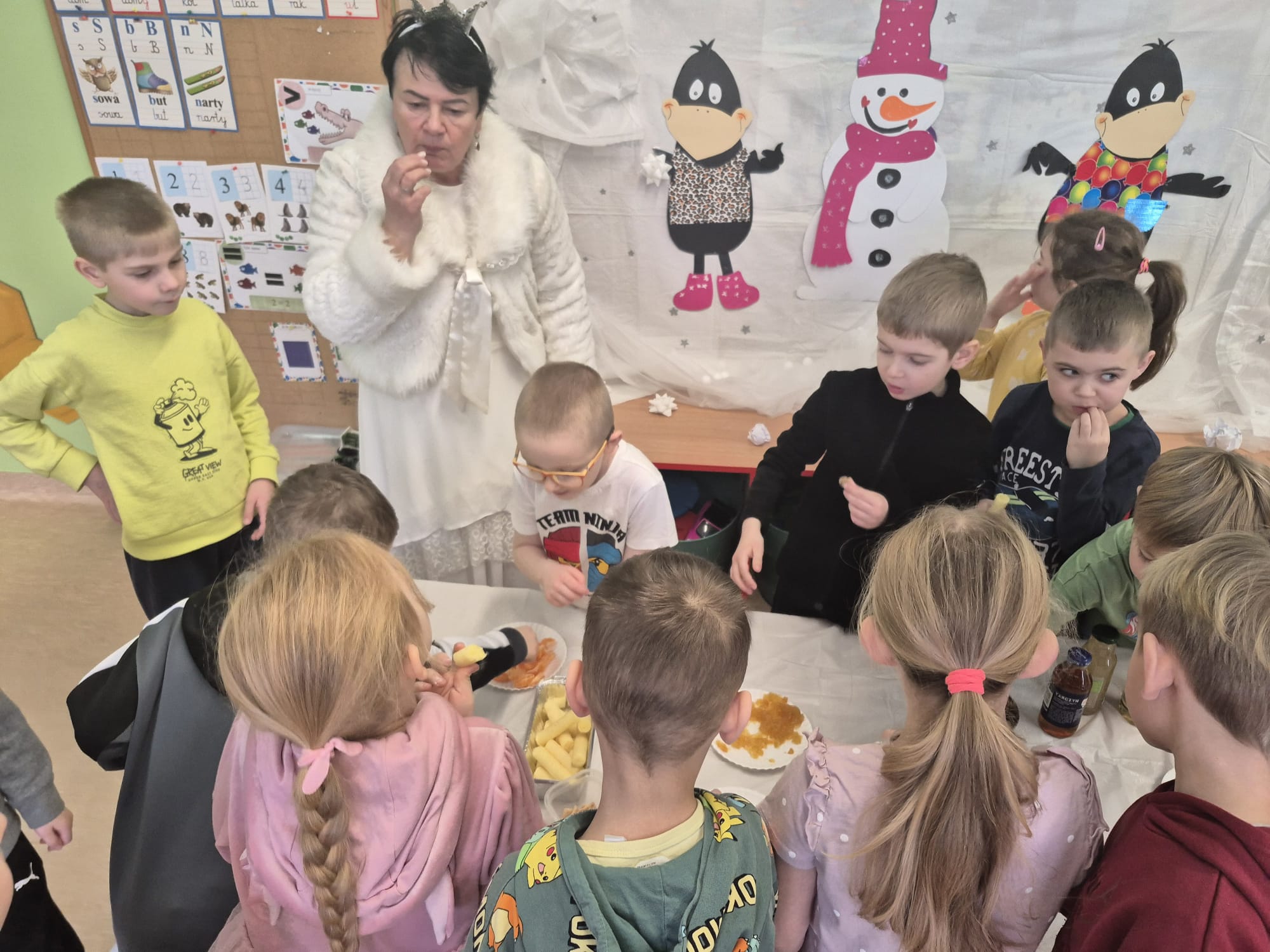 W naszym przedszkolu odbyły się kolejne, wyjątkowe zajęcia w ramach innowacji pedagogicznej o charakterze metodyczno-organizacyjnym pt. „Sensorycznie przez pory roku”. Wszystkie przedszkolaki miały okazję w niezwykle angażujący sposób poznawać uroki zimy – i to dosłownie każdym zmysłem!