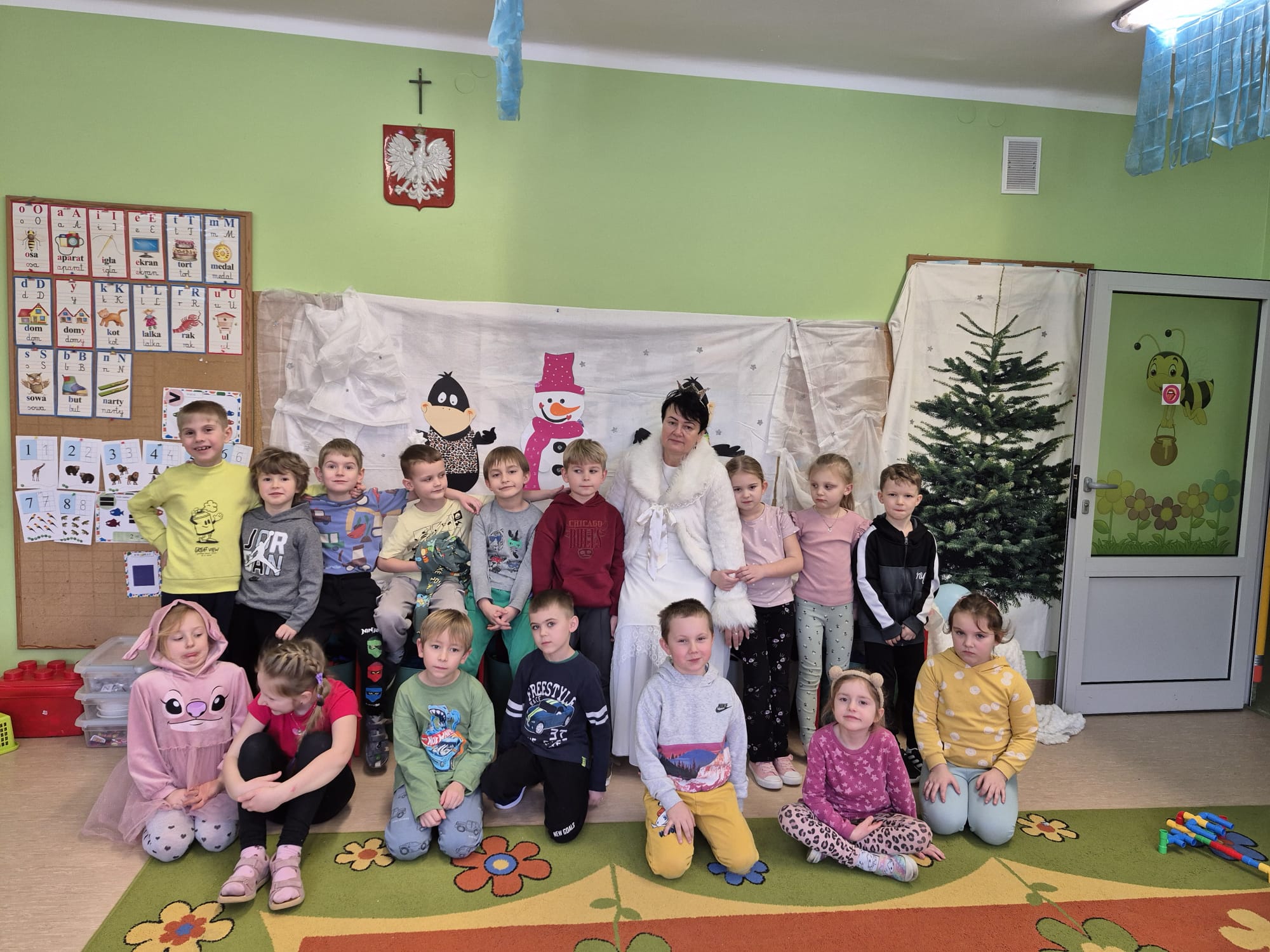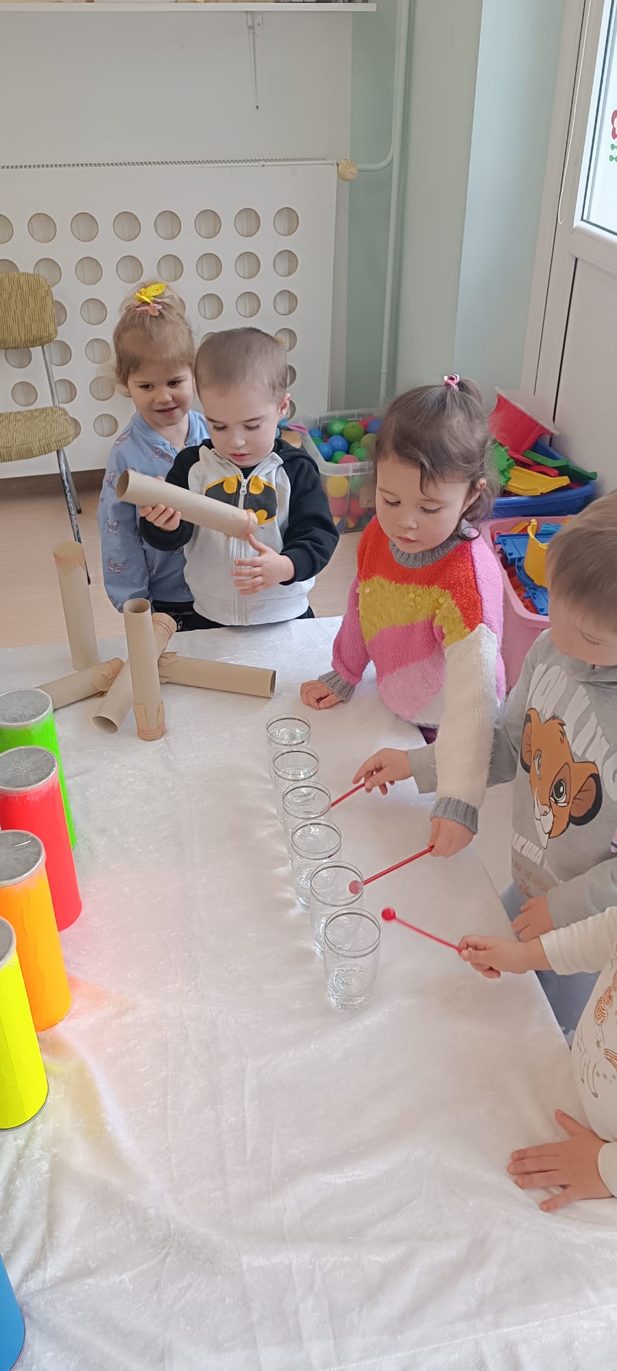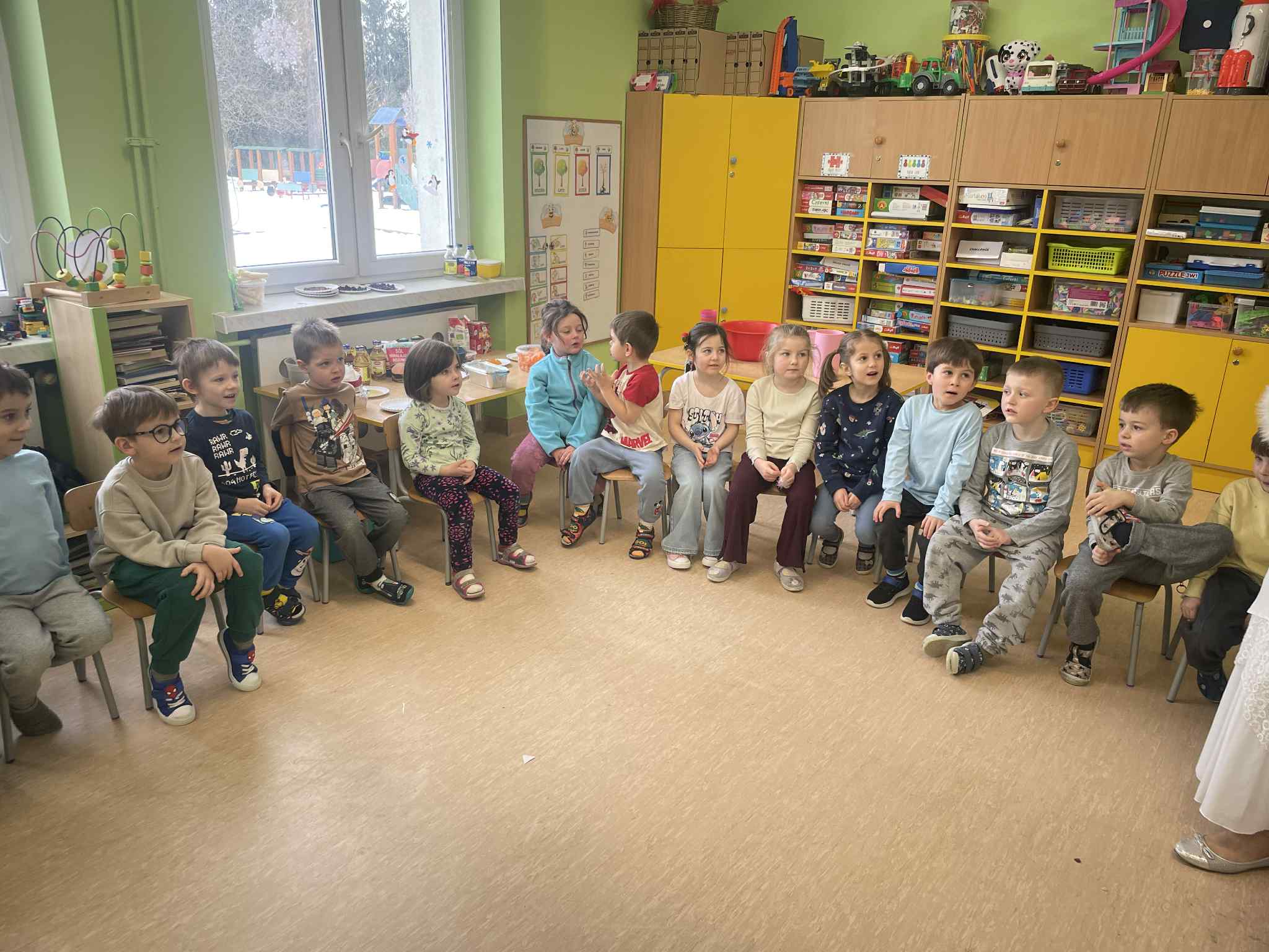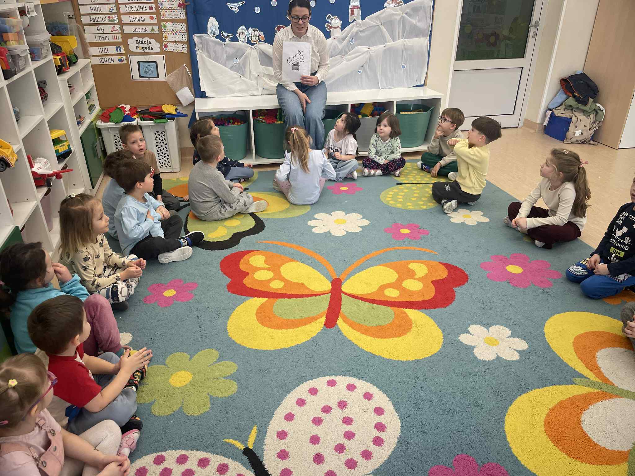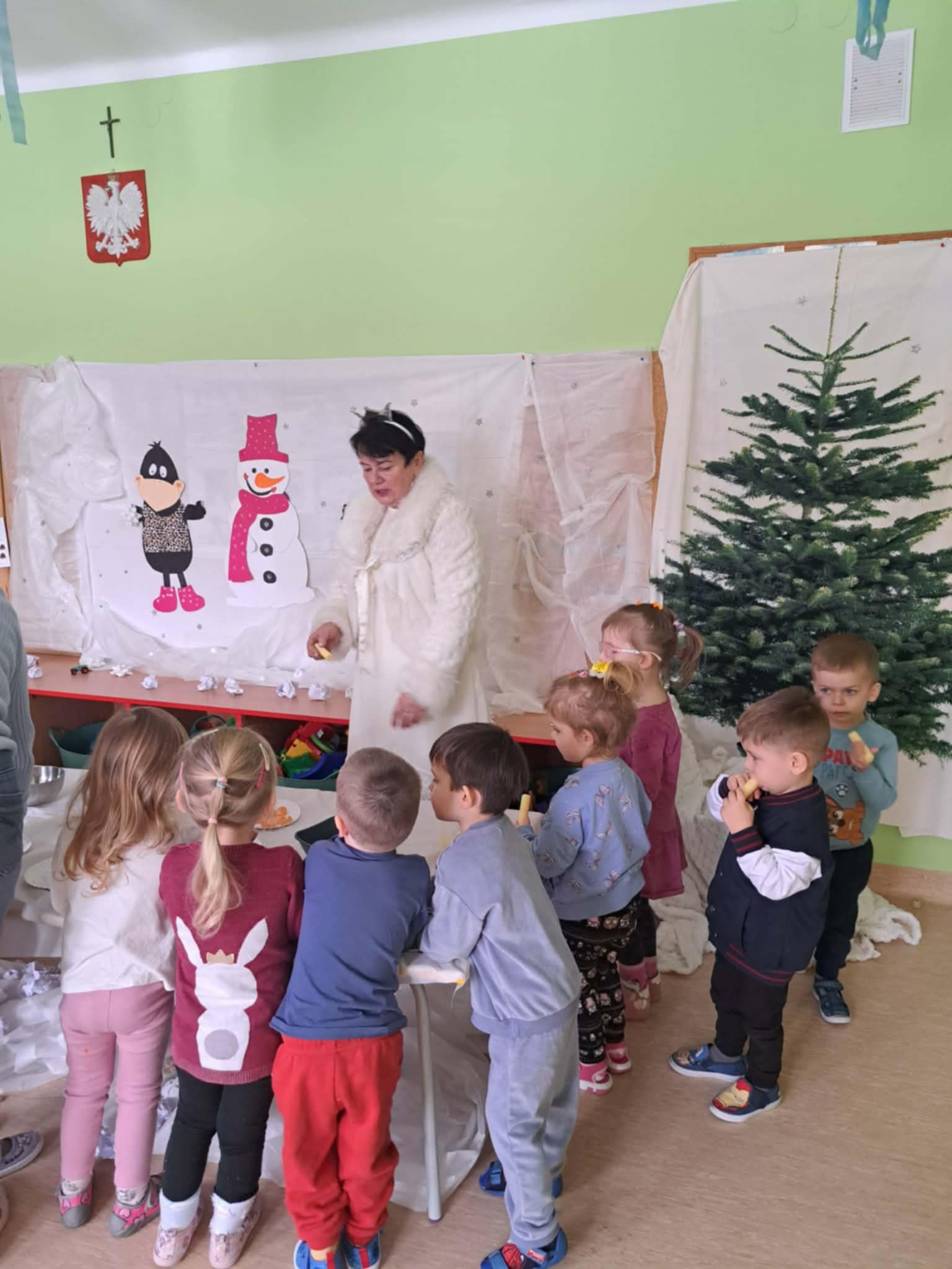 W tej grupie królowały dźwięki! Dzieci wsłuchiwały się w odgłosy zimy, śpiewały zimowe piosenki i muzykowały przy użyciu instrumentów domowej roboty. Prawdziwym hitem okazała się sensoryczna ścieżka muzyczna, która pozwoliła przedszkolakom „wychodzić” rytm zimy.