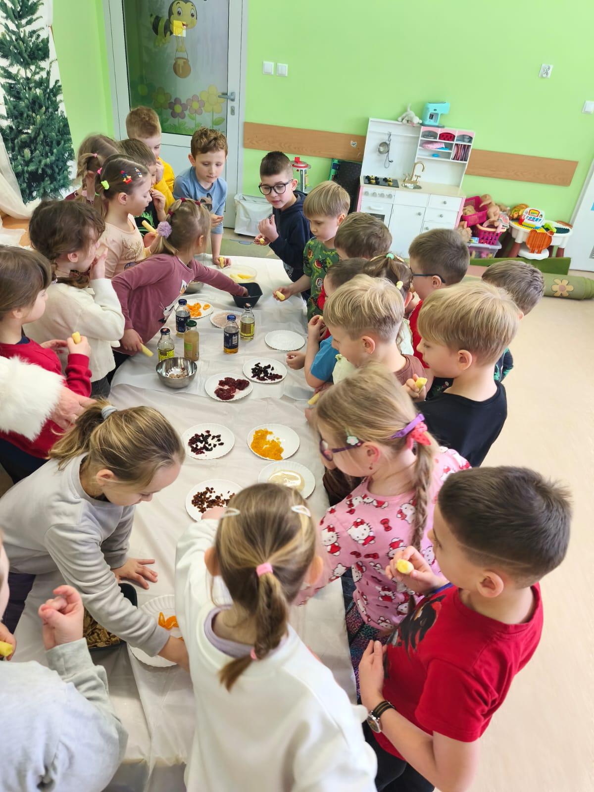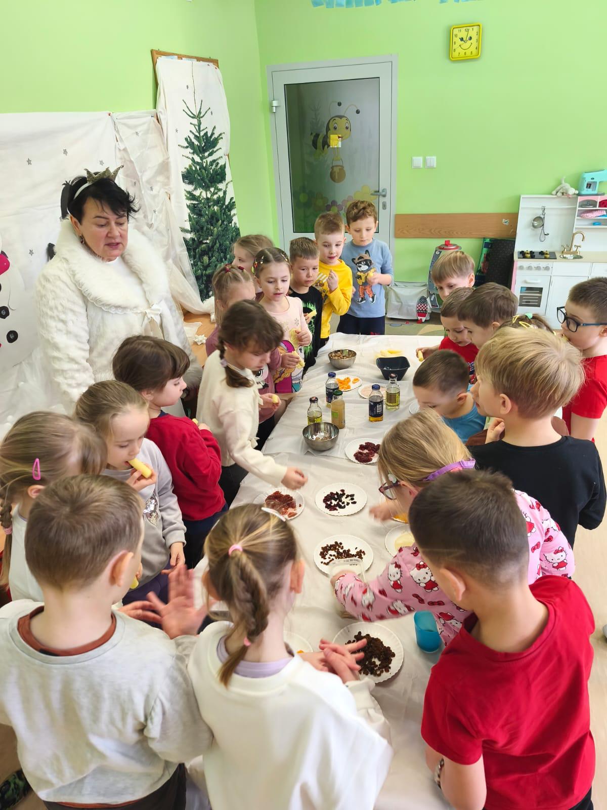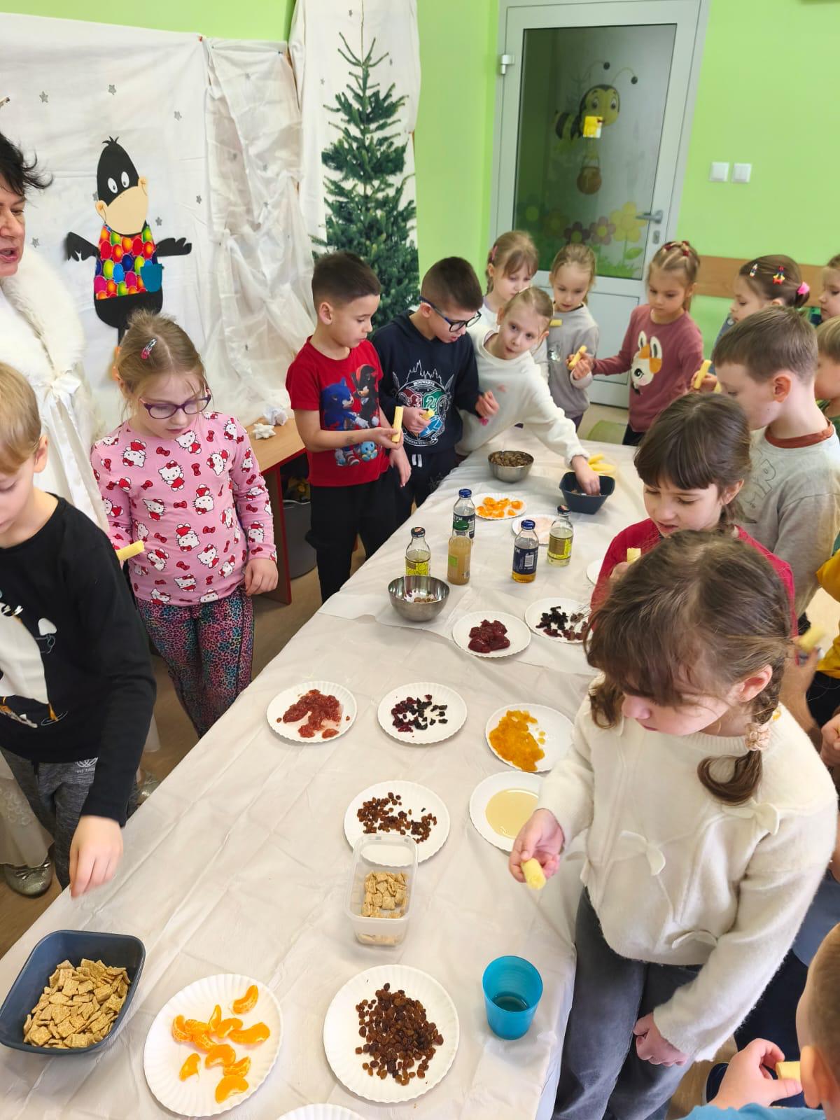 Mali smakosze ruszyli na podbój zimowej spiżarni. Próbowali sezonowych owoców i warzyw, domowych przetworów, suszonych owoców oraz rozgrzewających soków. Nie zabrakło też korzennych pierniczków! To była prawdziwa uczta, która pokazała, jak pyszna może być zima.