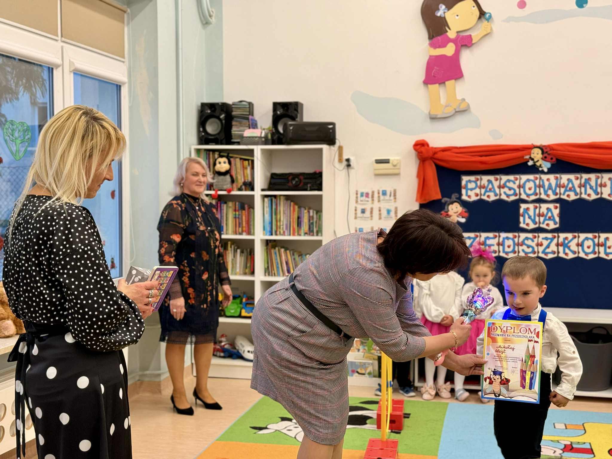 Kiedy Pani Dyrektor za pomocą czarodziejskiej różdżki dotknęła ramienia każdego dziecka, stało się jasne – Biedroneczki oficjalnie dołączyły do grona Przedszkolaków!