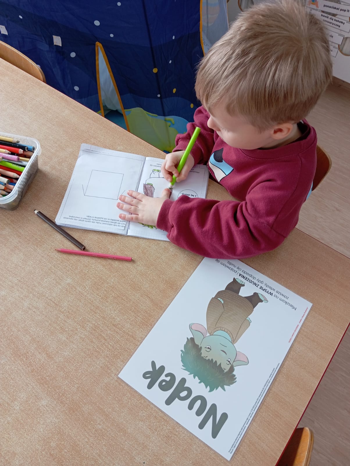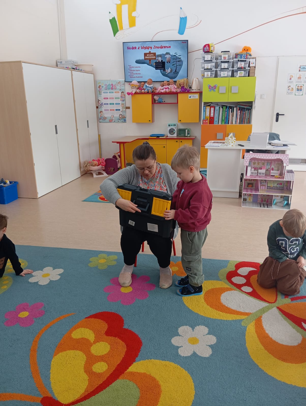 Podczas zajęć przedszkolaki z zaangażowaniem rozmawiały o tym, czym jest nuda, kiedy się pojawia oraz jak można sobie z nią poradzić. Poznały także historię Anielki, do której też czasem przychodzi nuda. Mogły także odkryć „skrzynkę narzędziową sposobów na nudę” pełną pomysłów na twórcze i radosne sposoby spędzania czasu, do której będą mogły sięgać zawsze wtedy, gdy pojawi się chwila znużenia.