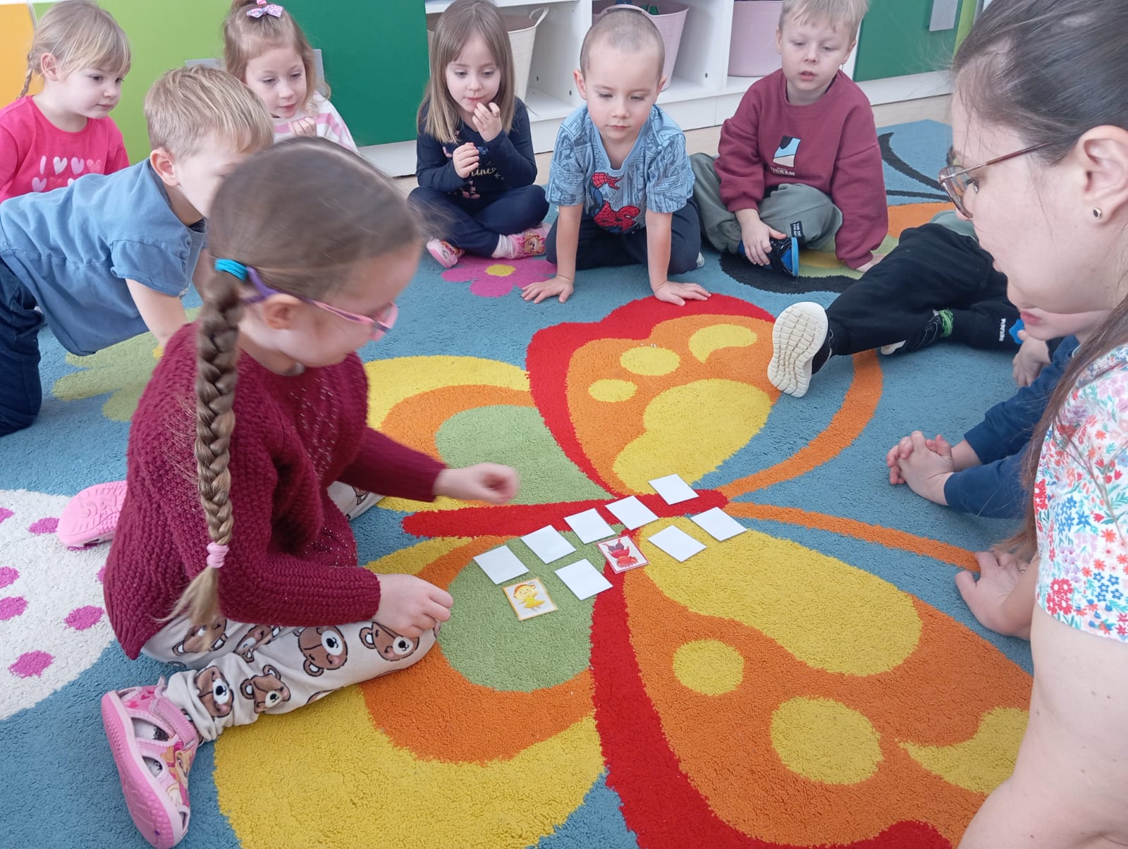 Nie zabrakło także zabawy – dzieci z entuzjazmem wzięły udział w emocjonującej grze planszowej memory, w której głównymi bohaterami były poznane podczas wcześniejszych zajęć Czuciaki o uczuciach.