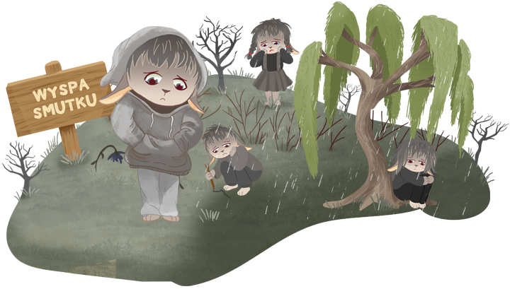 Tą podróż przedszkolaki rozpoczęły od wyprawy na Wyspę Smutku. Tam poznały pierwszego z mieszkańca Wyspy – Markotka, który wprowadził dzieci w świat emocji związanych ze smutkiem. Przedszkolaki dowiedziały się, że smutek jest naturalną reakcją na coś trudnego… choć może to być nieprzyjemną emocją, to jest ona nam bardzo potrzebna. Dzieci mogły nauczyć się tego, że smutek nie jest niczym złym i poznać sposoby, jak w takich chwilach możemy sobie pomóc oraz to, że każdy inaczej może przeżywać smutek.