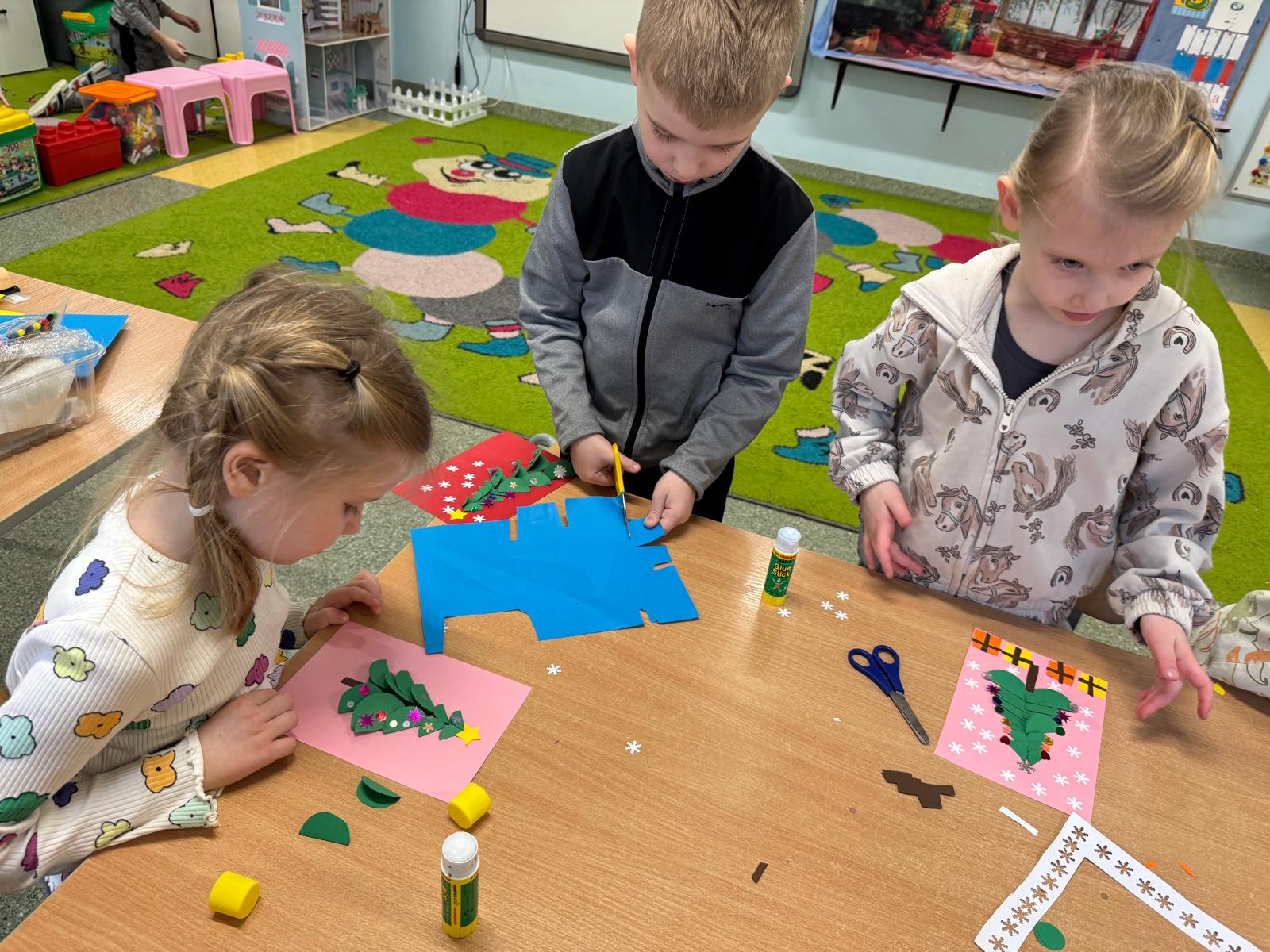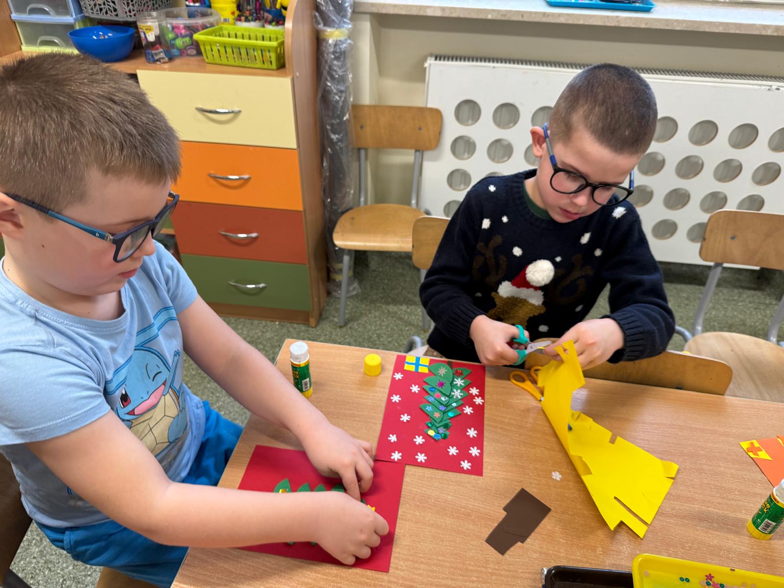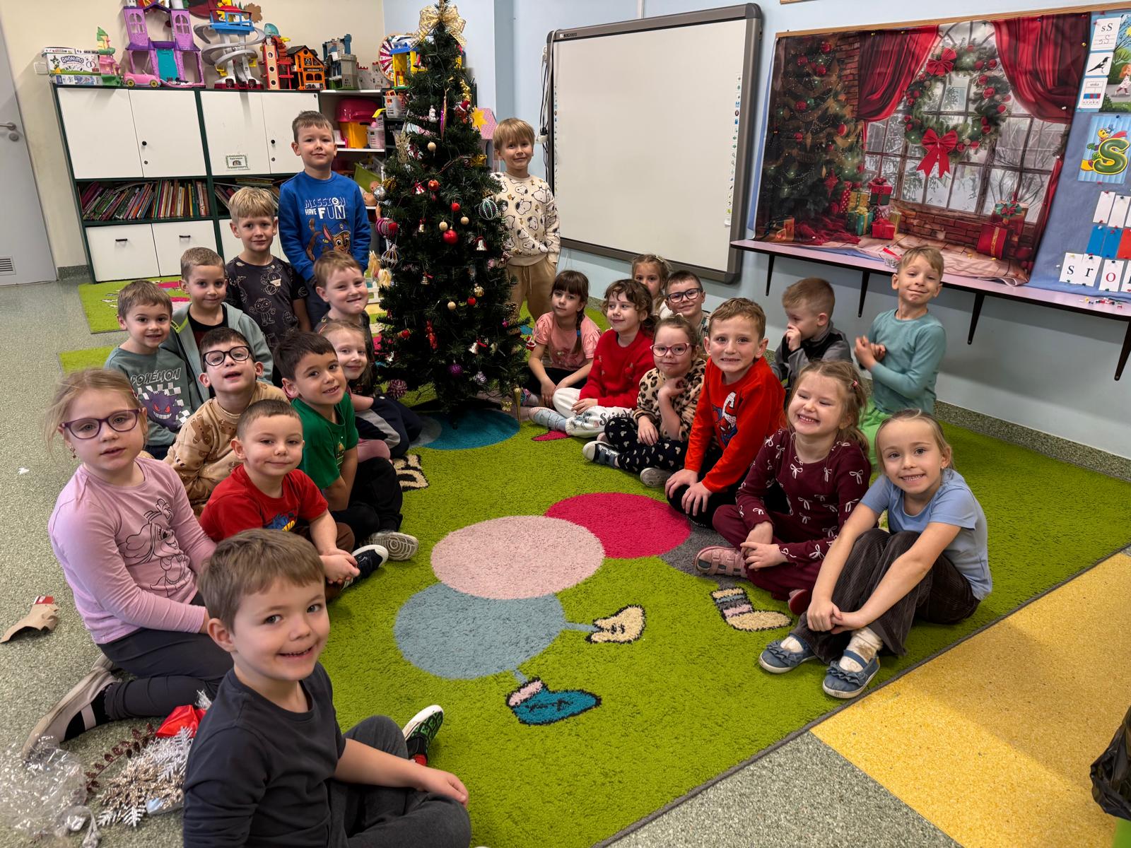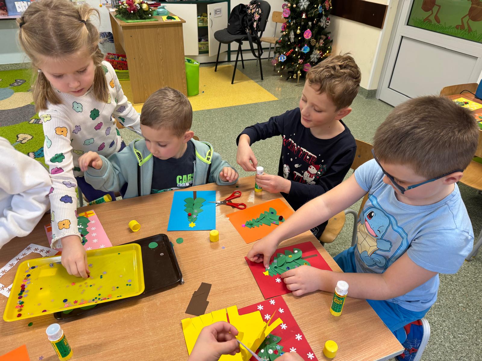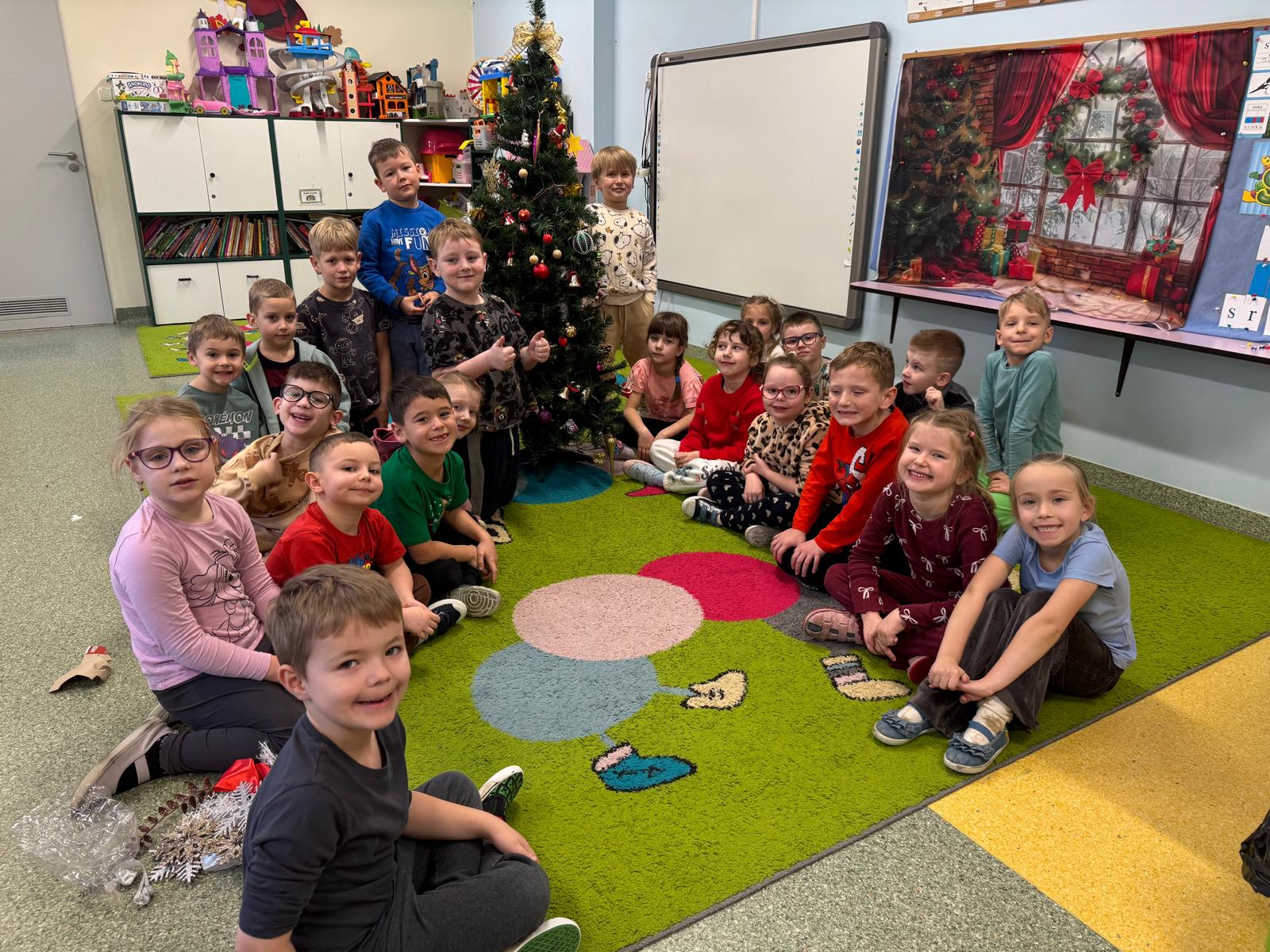 Najwięcej emocji wzbudziło wspólne ubieranie choinki. Dzieci zawieszały bombki, łańcuchy i własnoręcznie wykonane ozdoby. Na koniec na czubku drzewka pojawiła się błyszcząca gwiazda — symbol świątecznej magii.