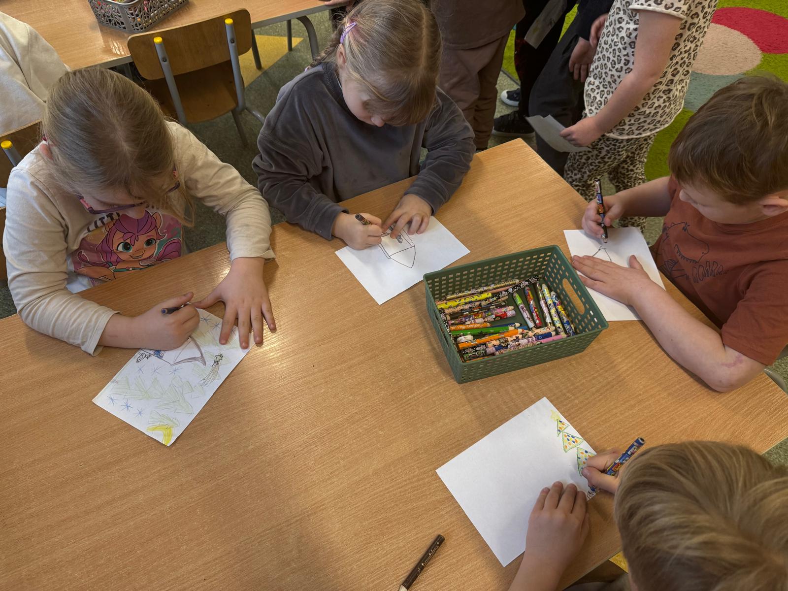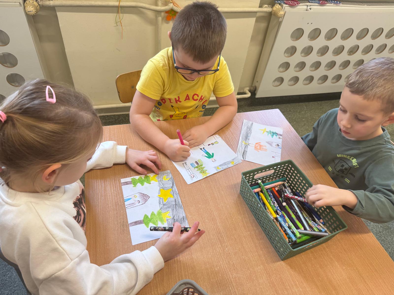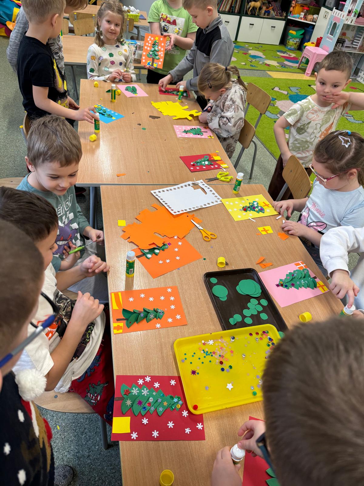Mróweczki przygotowały również własnoręczne kartki świąteczne. Każda była wyjątkowa — pełna kolorów, brokatu i dziecięcej wyobraźni. To piękny sposób, by podzielić się dobrem i radością.