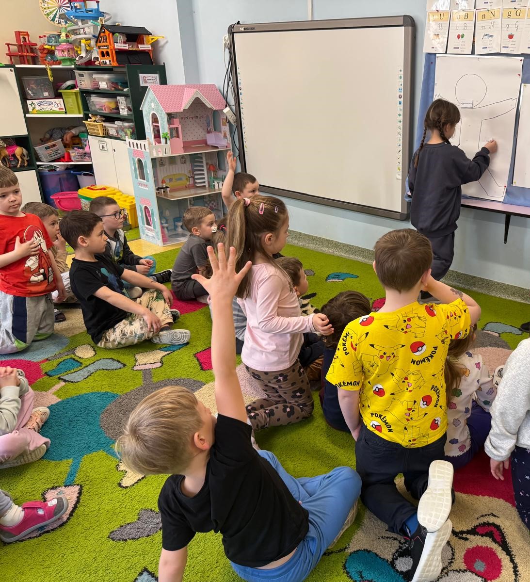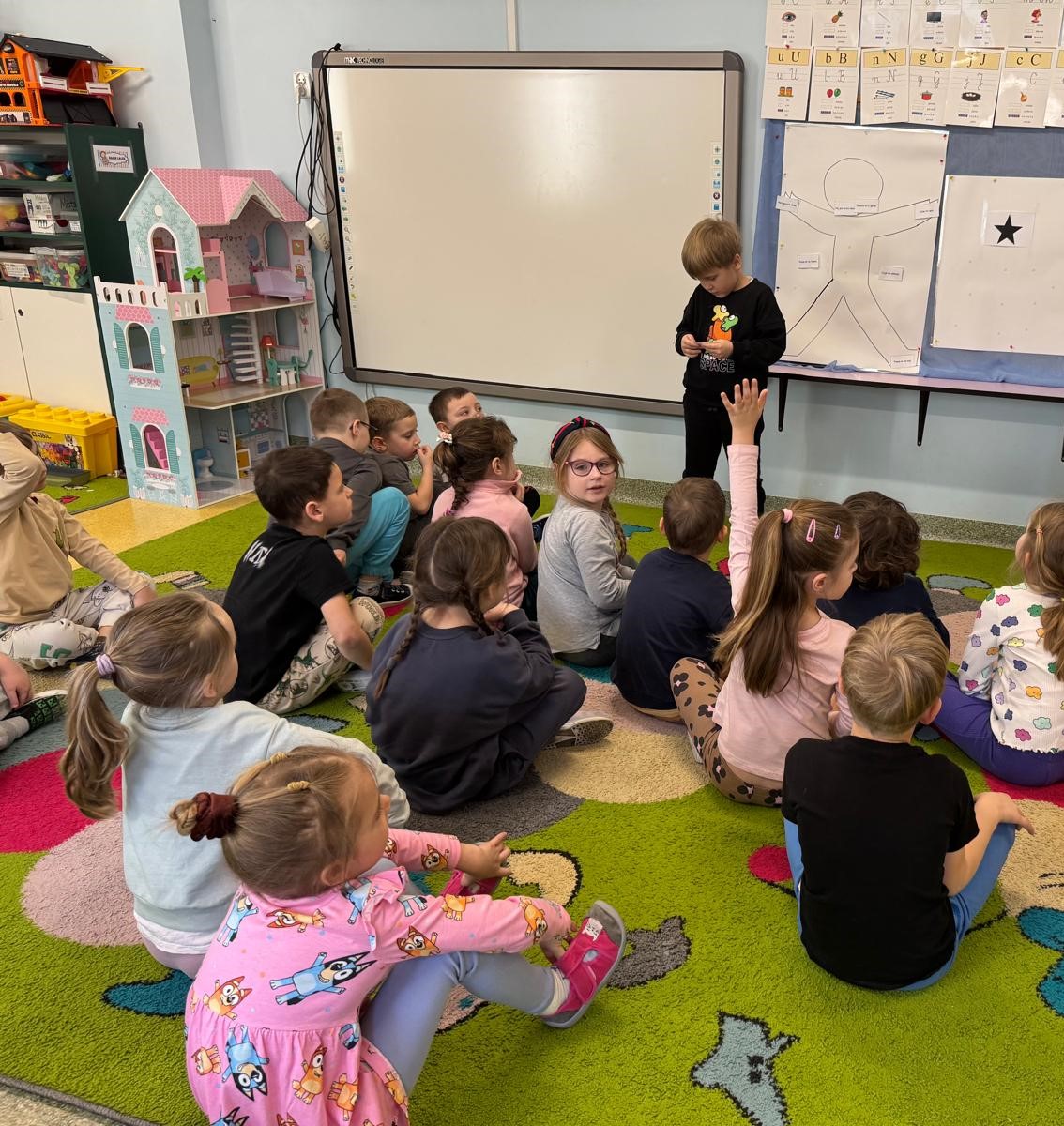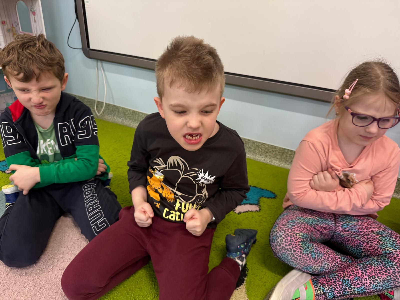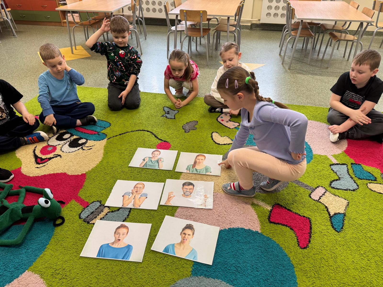 Kolejnym tematem była złość oraz zdenerwowanie. Dzieci próbowały nazwać sytuacje, w których pojawiają się te emocje, a także opowiadały, jak reagują, gdy coś je rozzłości lub zdenerwuje. Wspólnie szukaliśmy sposobów, które pomagają się uspokoić – dzieci proponowały m.in. spokojny oddech, chwilę odpoczynku, rozmowę z kolegą lub z nauczycielem.