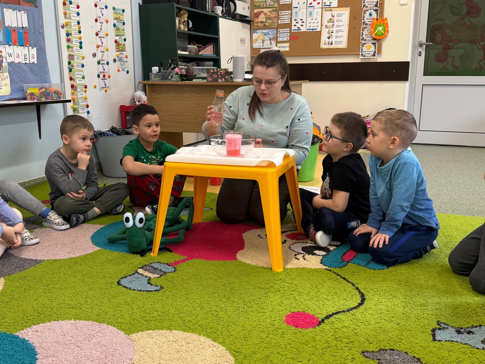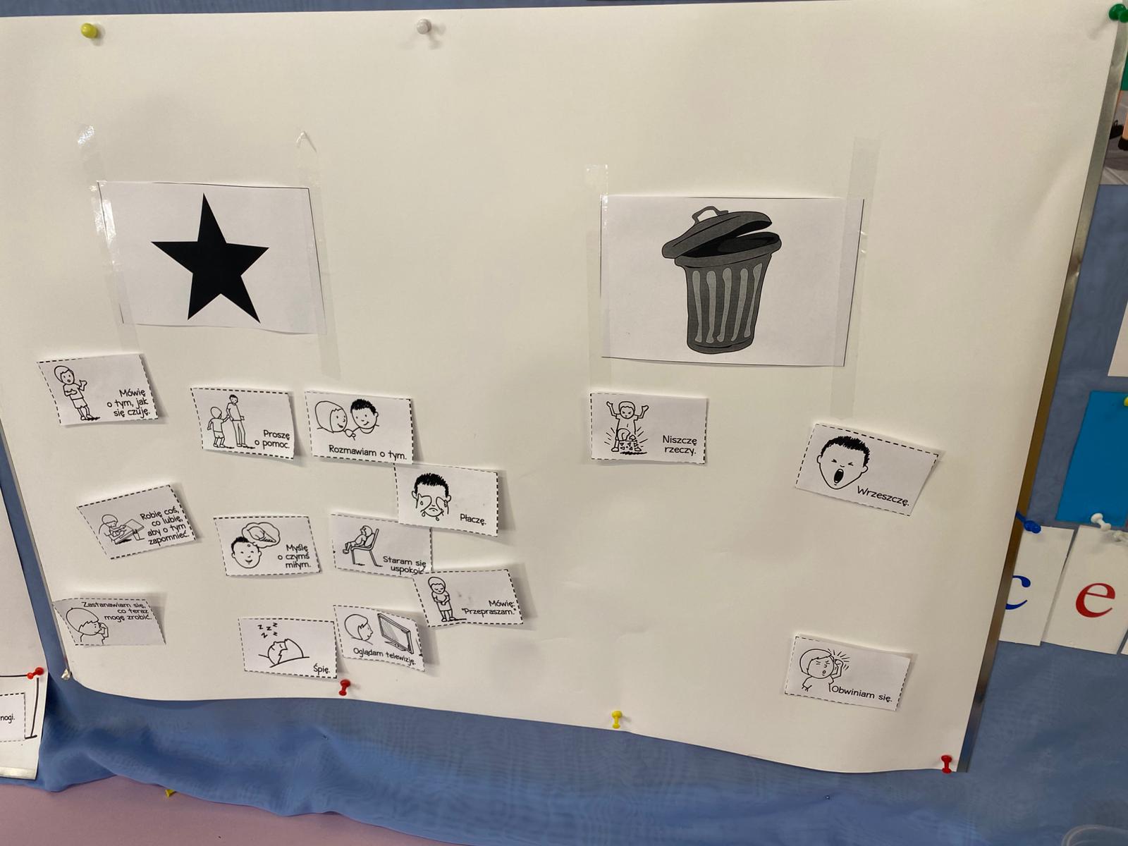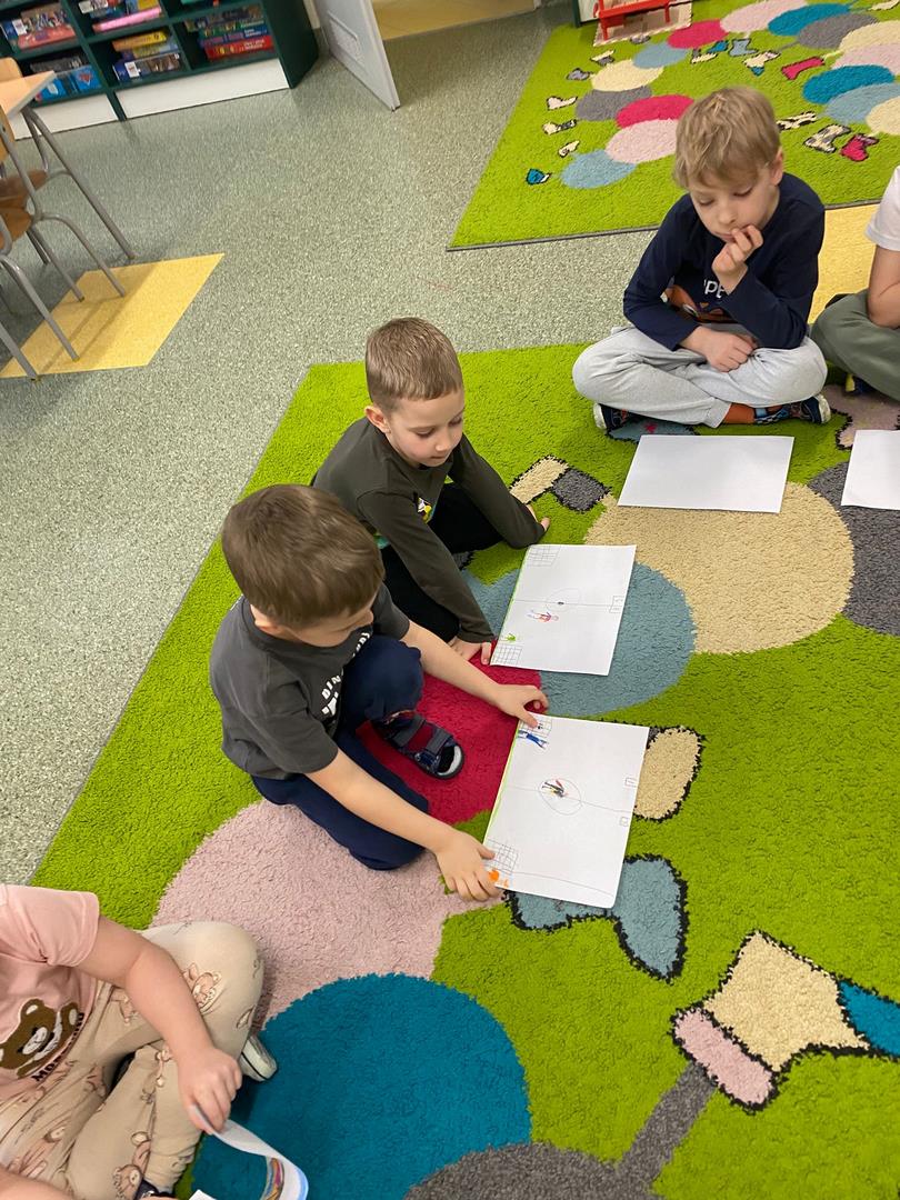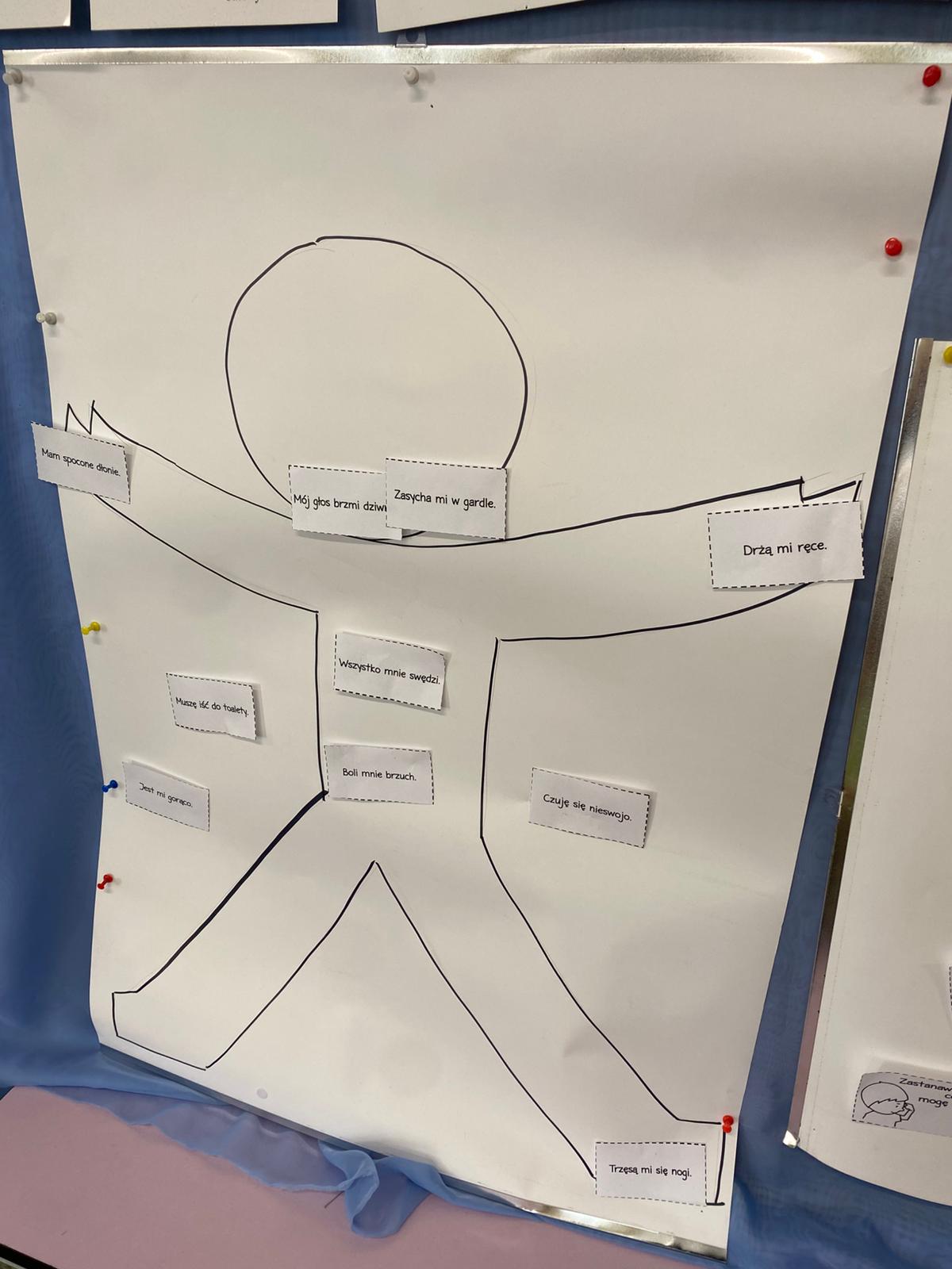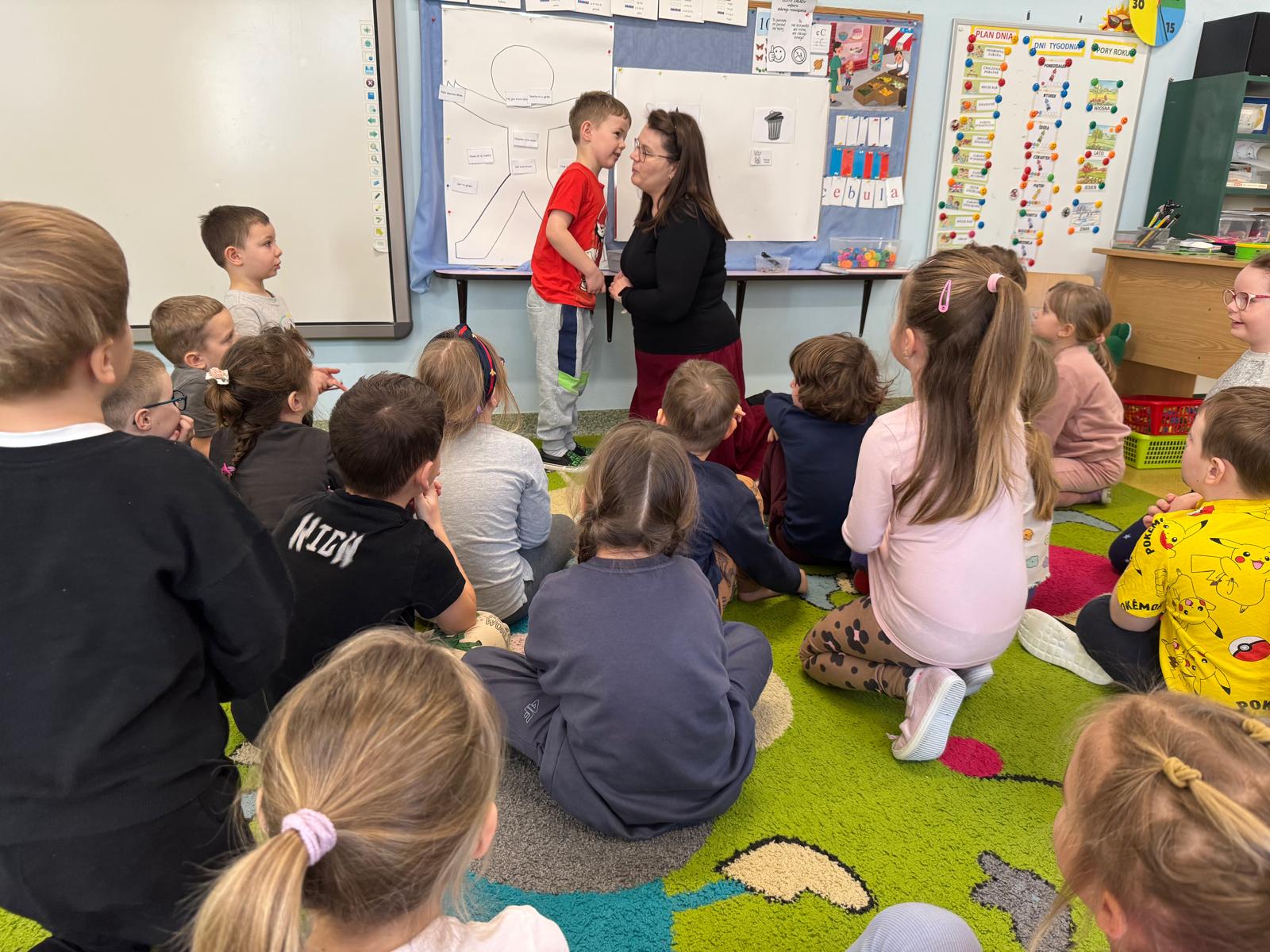 Kolejnym tematem była złość oraz zdenerwowanie. Dzieci próbowały nazwać sytuacje, w których pojawiają się te emocje, a także opowiadały, jak reagują, gdy coś je rozzłości lub zdenerwuje. Wspólnie szukaliśmy sposobów, które pomagają się uspokoić – dzieci proponowały m.in. spokojny oddech, chwilę odpoczynku, rozmowę z kolegą lub z nauczycielem.