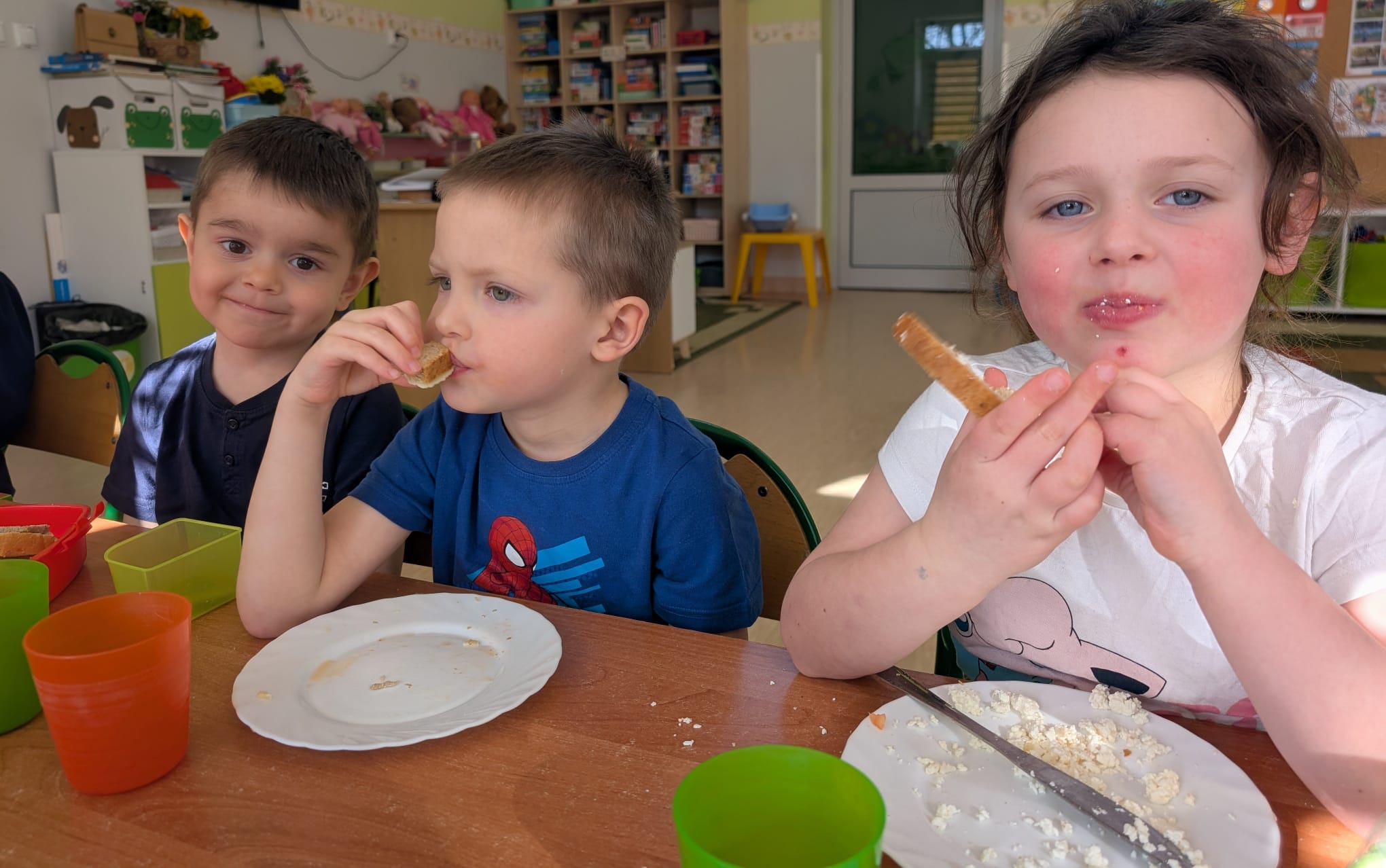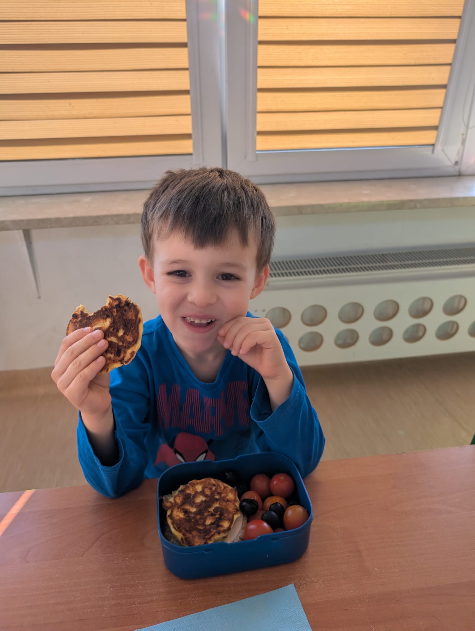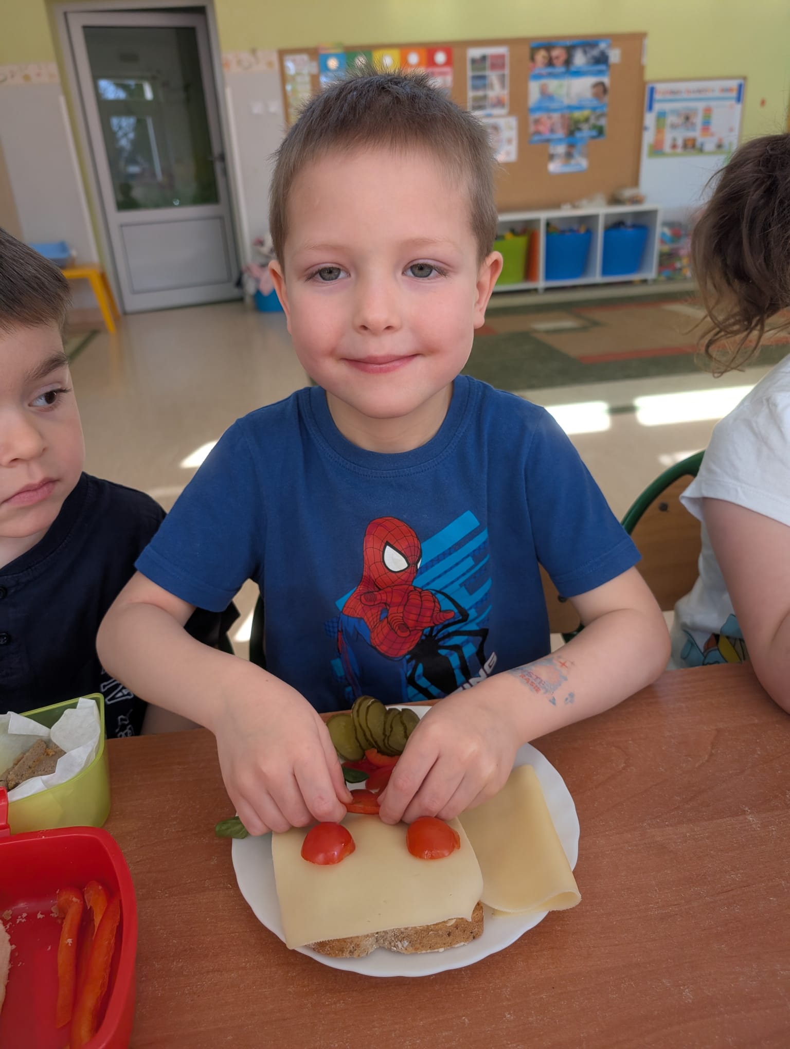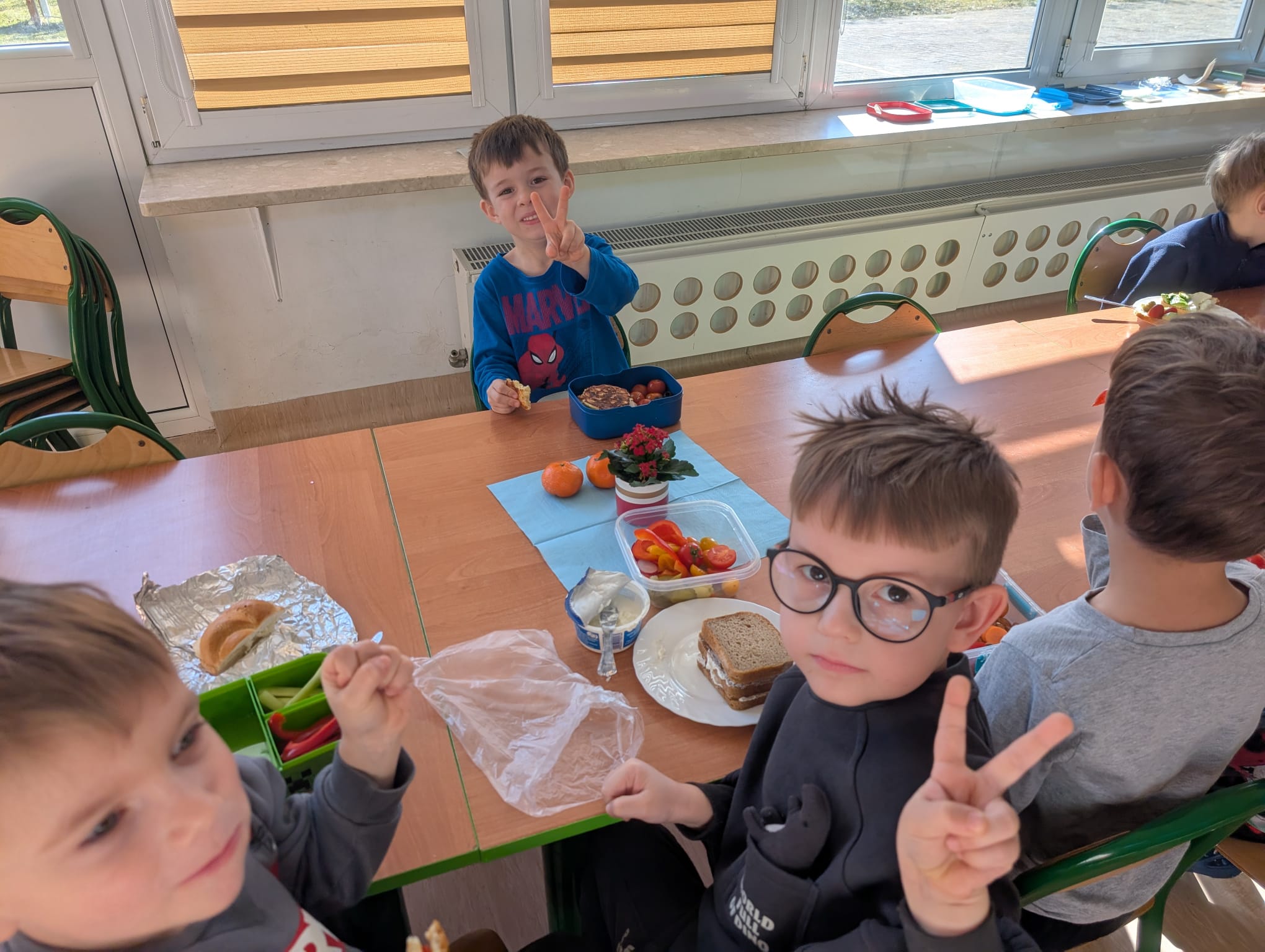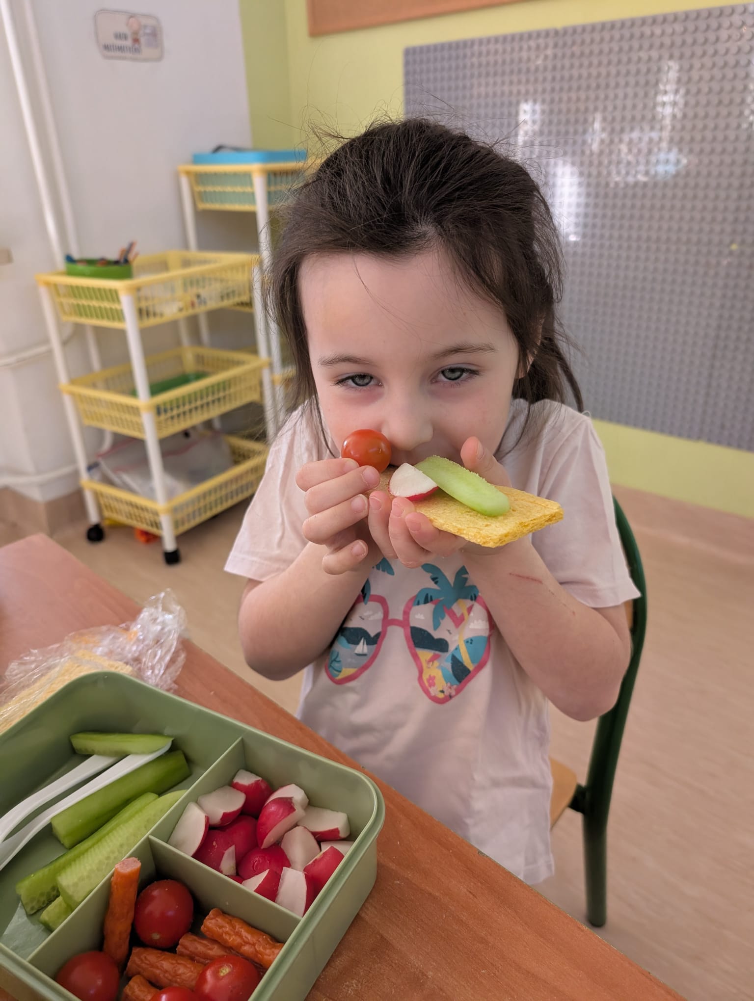 Podczas wspólnego posiłku sala wypełniła się zapachami świeżych warzyw i owoców. „Żabki” z dumą prezentowały swoje posiłki kolegom, opowiadając o ich składnikach. Najpiękniejszym widokiem była jednak umiejętność dzielenia się – wymiana plasterkiem papryki czy kawałkiem ogórka pokazała, jak silne są więzi w naszej grupie.