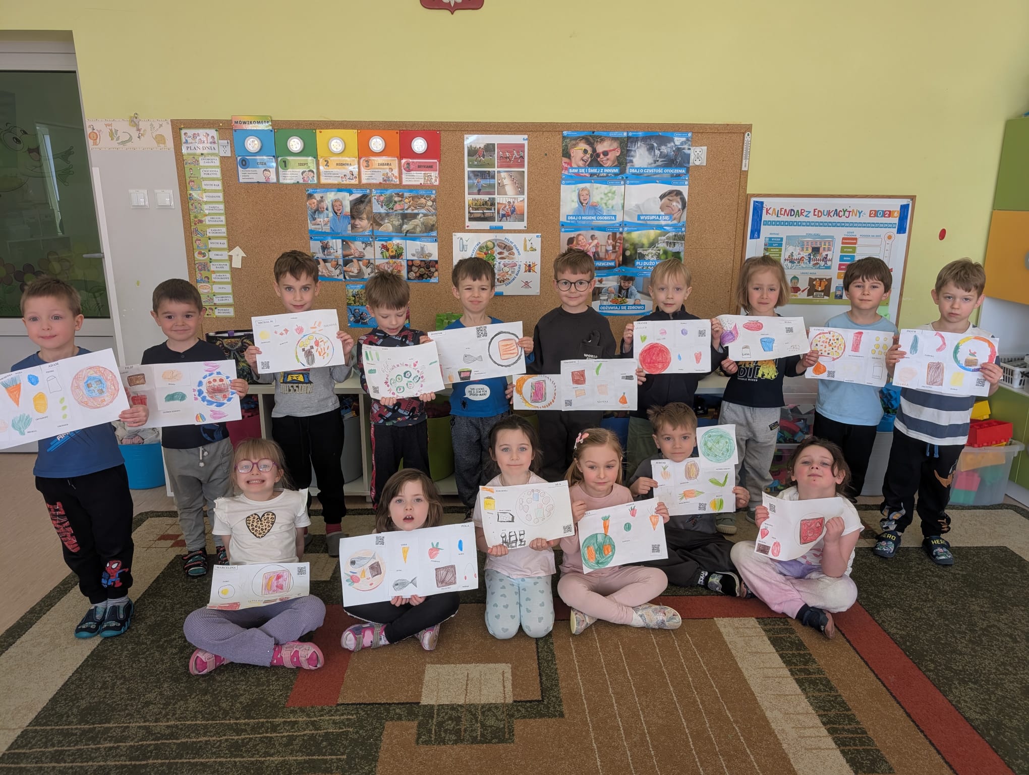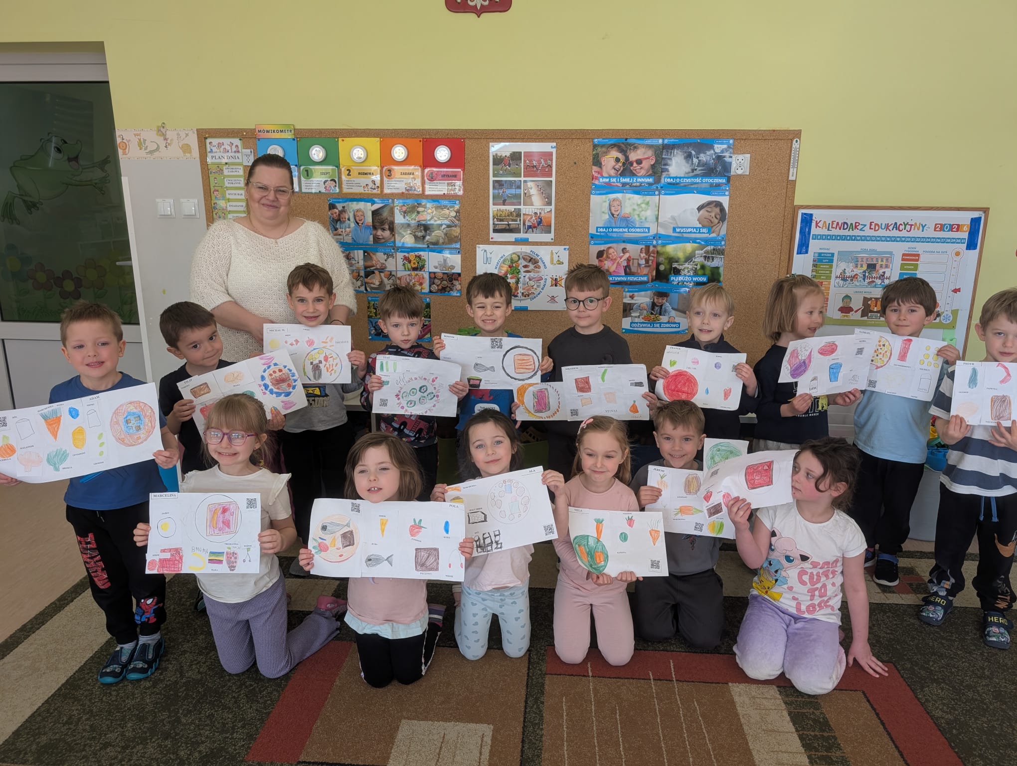 Technologia i mowa: Każda „Żabka” podjęła próbę ustnego opisania sposobu przygotowania dania. Efekty tych opowieści ukryliśmy w kodach QR na pracach dzieci – zachęcamy do ich zeskanowania i wysłuchania naszych małych kucharzy! To genialne ćwiczenie budowania dłuższych wypowiedzi poprawnych pod względem gramatycznym.