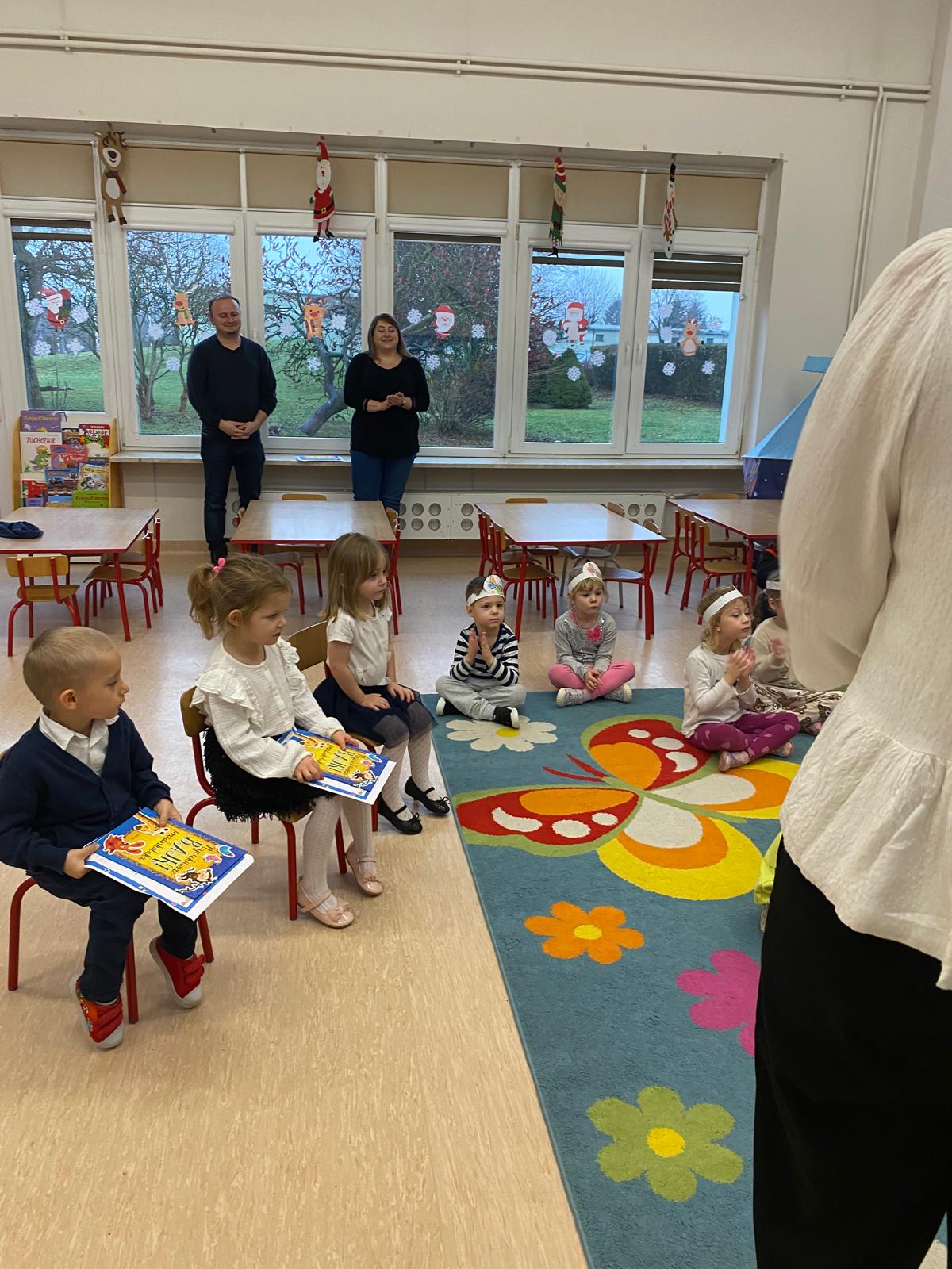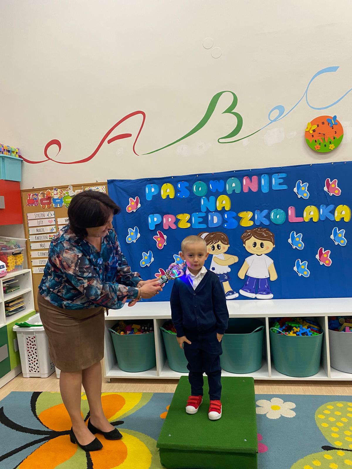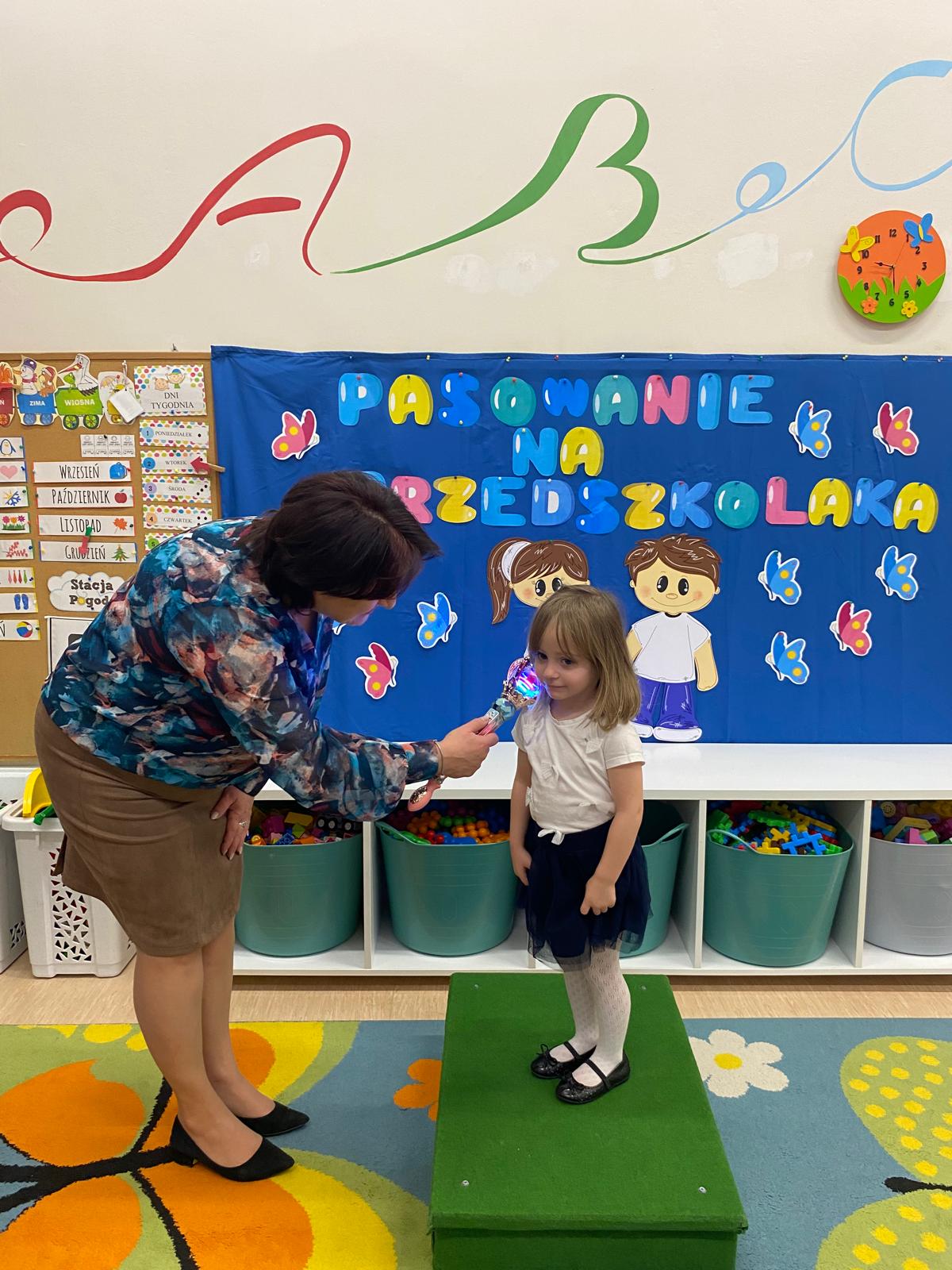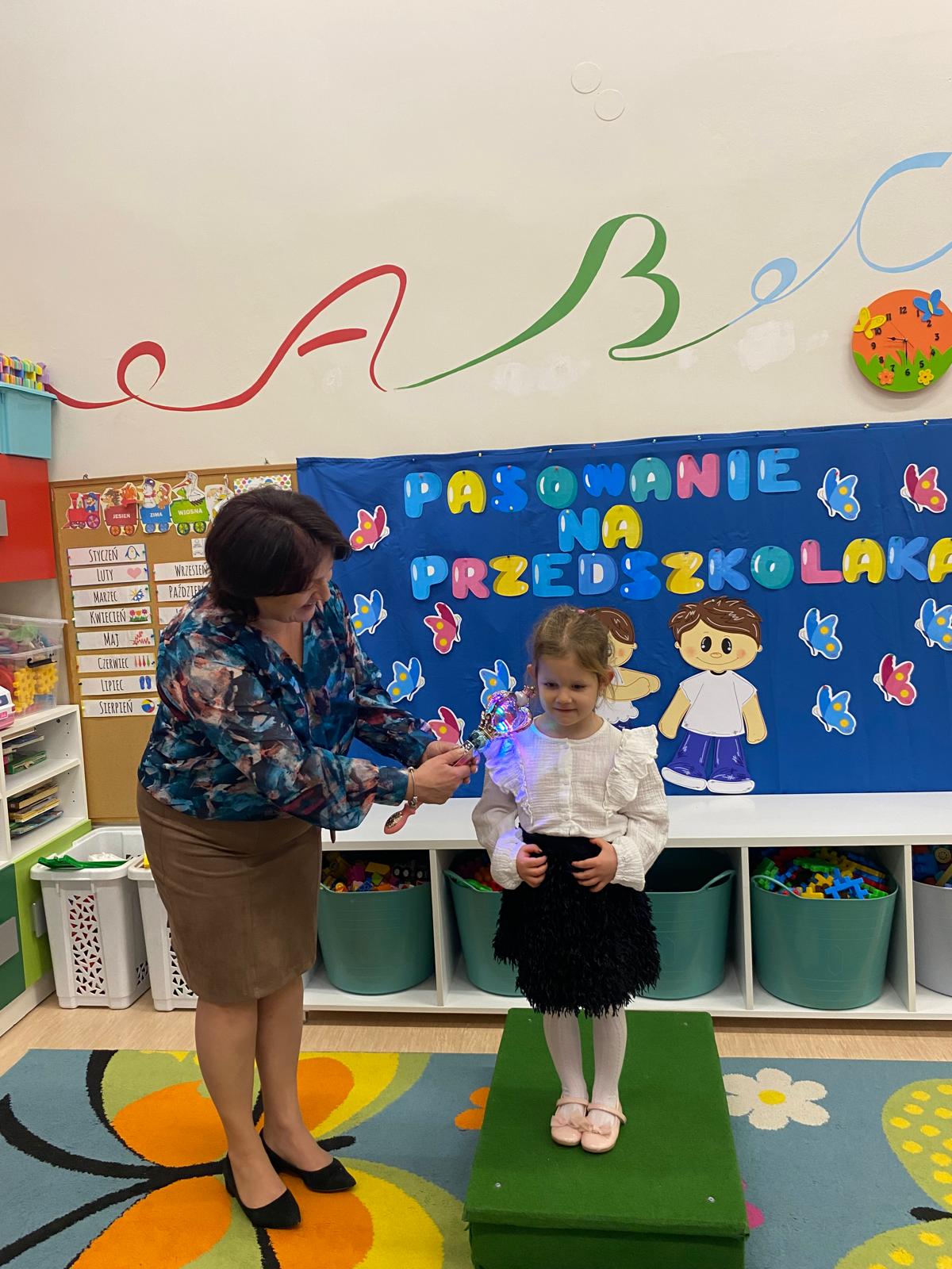 A na sam koniec, nadszedł ten najważniejszy, najbardziej wzruszający moment! W magicznej atmosferze dołączyła do nas Pani Dyrektor. Za pomocą czarodziejskiej różdżki i z uśmiechem na ustach, pasowała trójkę nowych Motylków na pełnoprawnych Przedszkolaków! Nowi członkowie naszej grupy otrzymali pamiątkowe dyplomy oraz piękne książeczki, jako symboliczne zaproszenie do naszego cudownego przedszkolnego świata!