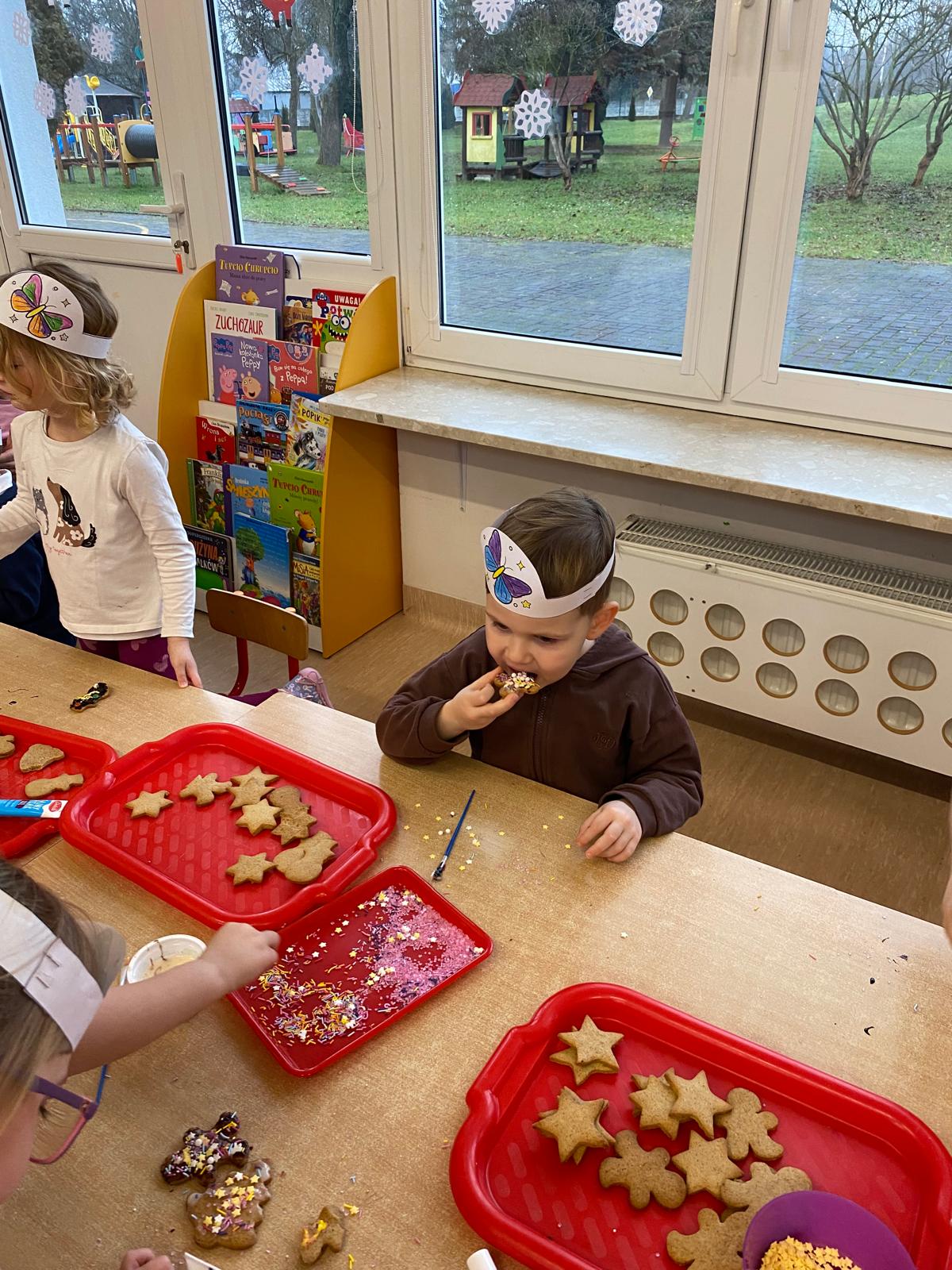 Oczywiście, najlepsza część pracy to jej pyszne zakończenie! Po upieczeniu i ostygnięciu, nadszedł czas na słodką degustację naszych własnoręcznie zrobionych i ozdobionych pierniczków. Mniam!