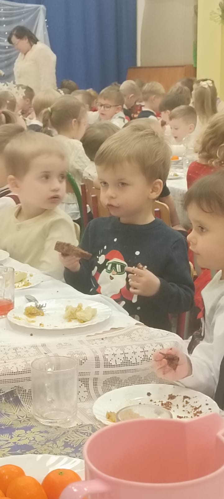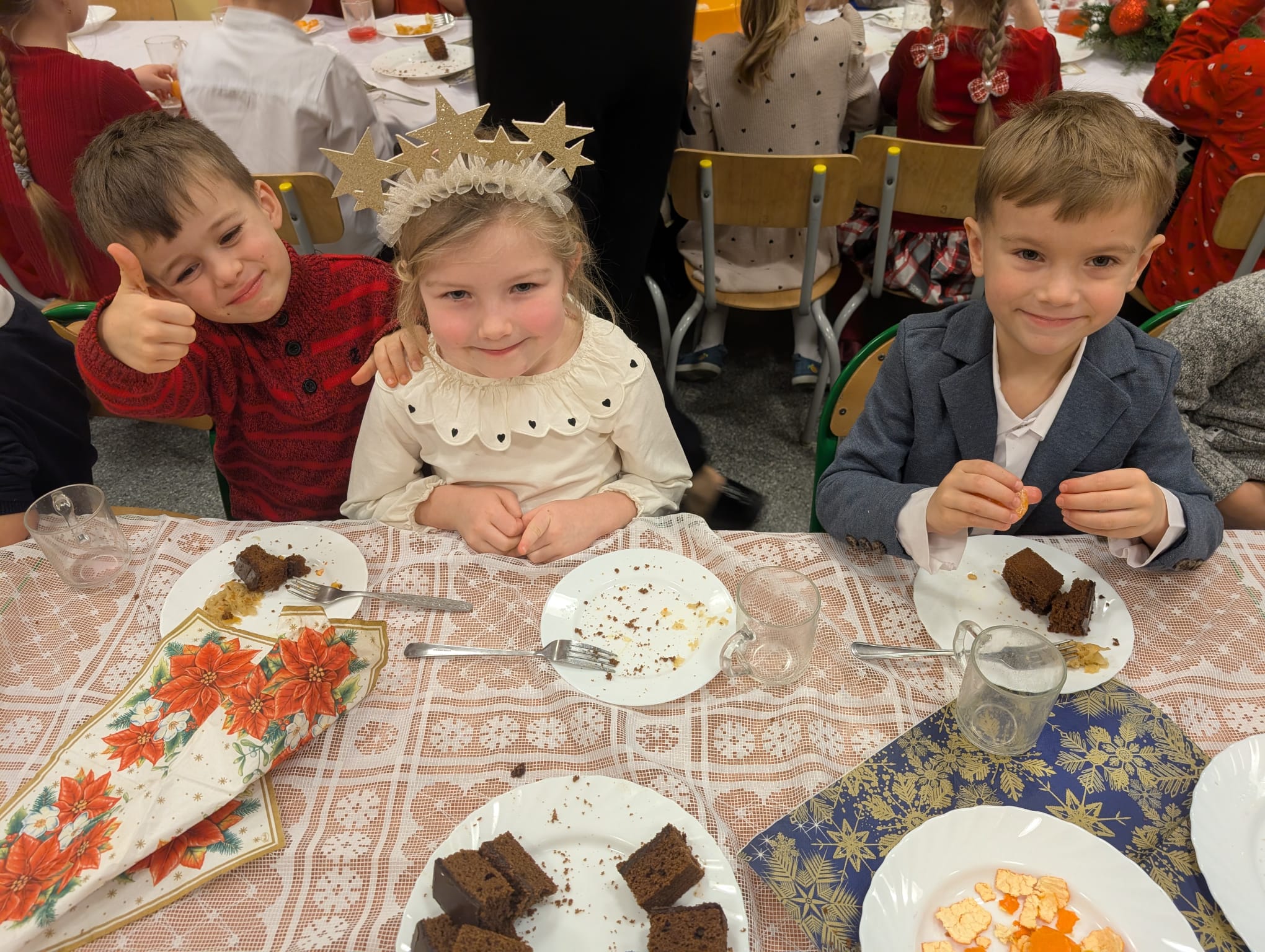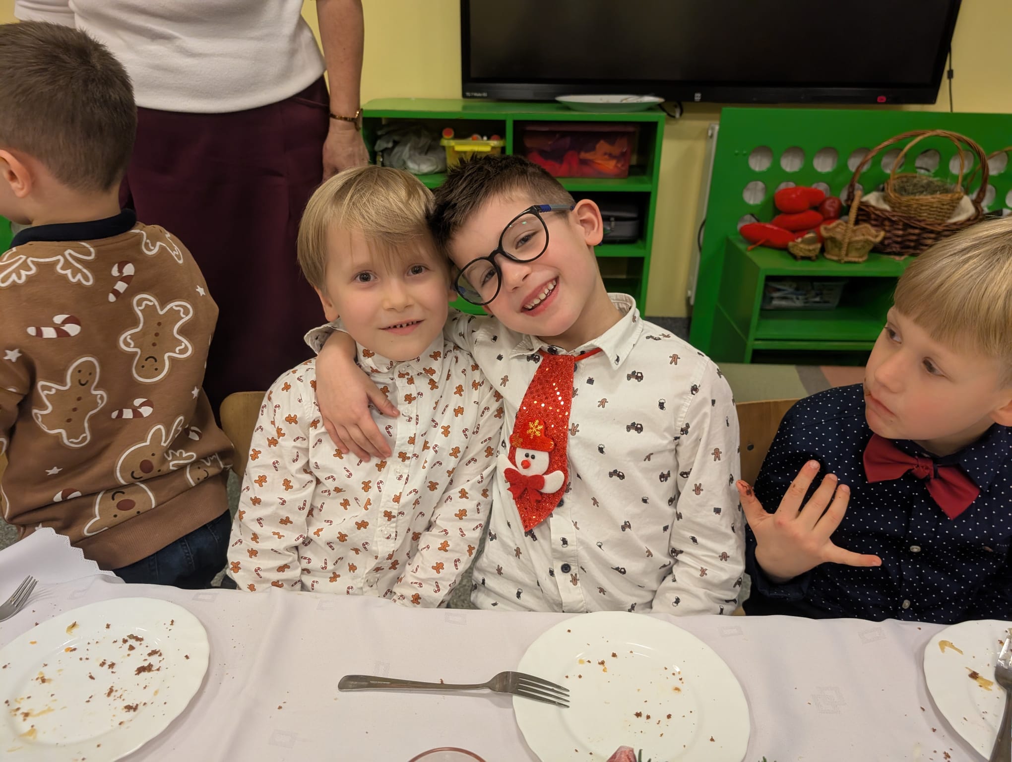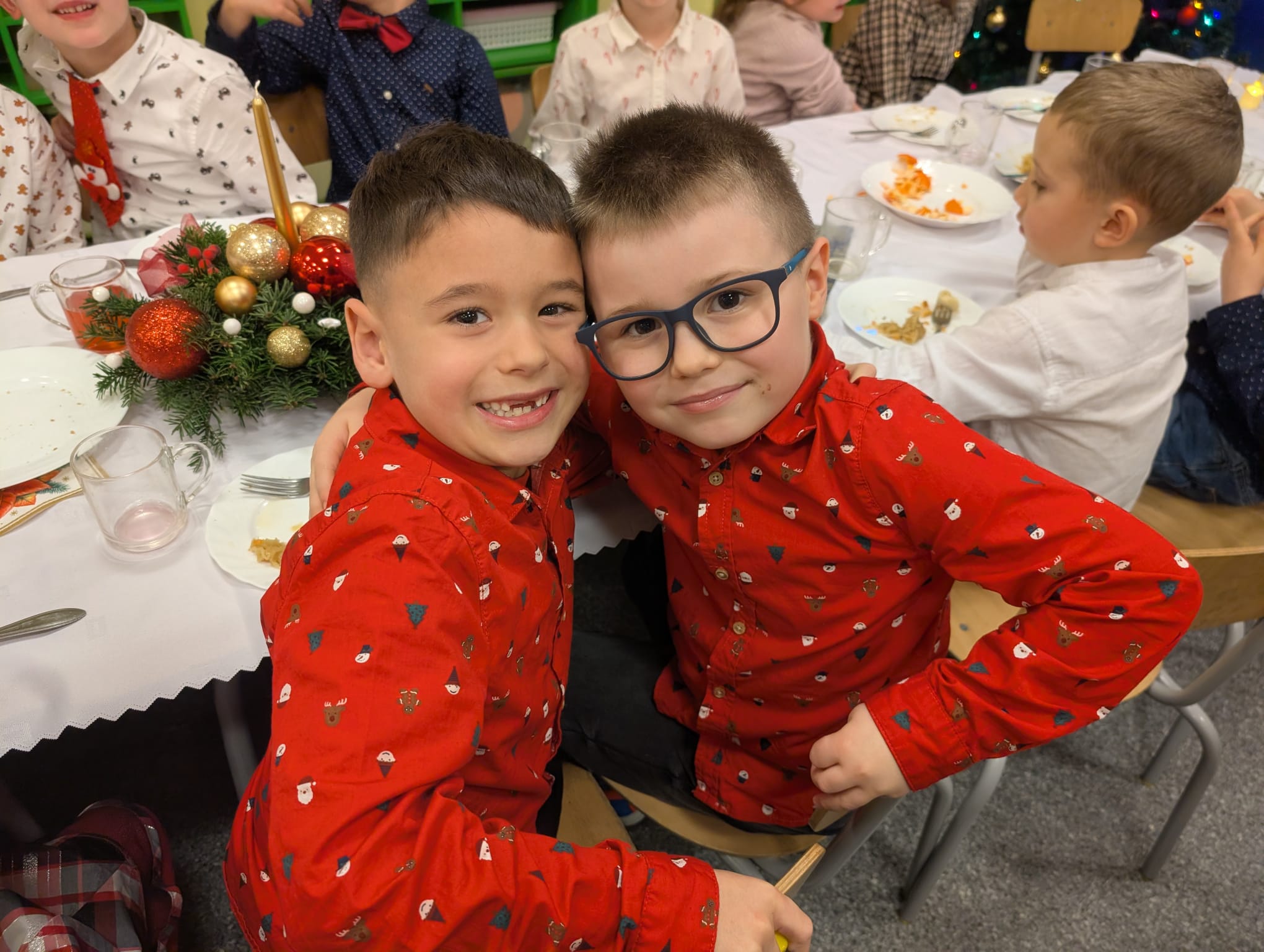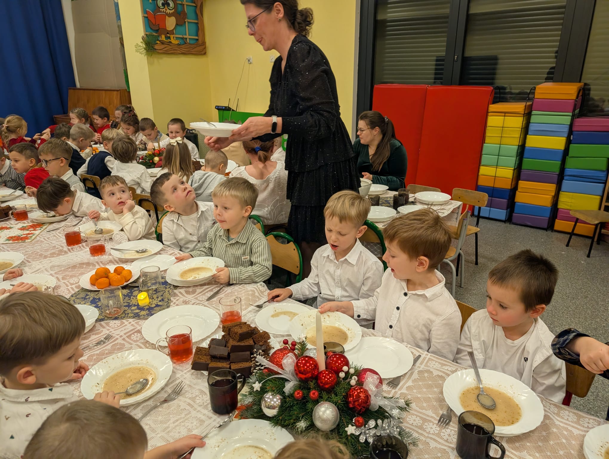 Przedszkolaki wniosły w to spotkanie mnóstwo uśmiechu, spontaniczności i ciepła. Ich rozmowy, śmiech i radosne oczekiwanie na święta sprawiły, że cała Wigilia nabrała jeszcze bardziej magicznego charakteru. Był to czas pełen bliskości, wzruszeń i wspólnego przeżywania świątecznej tradycji, która łączy nas wszystkich.