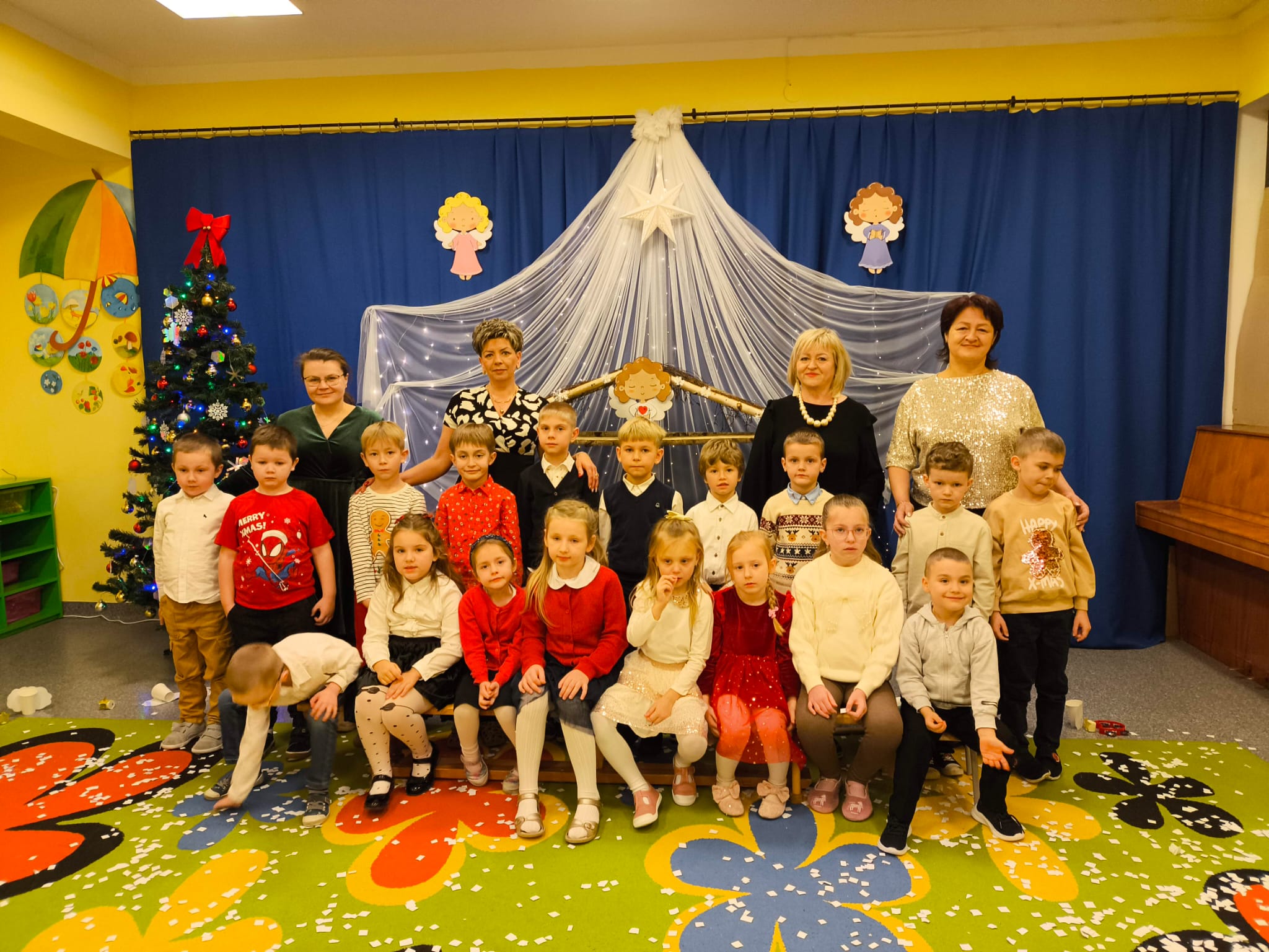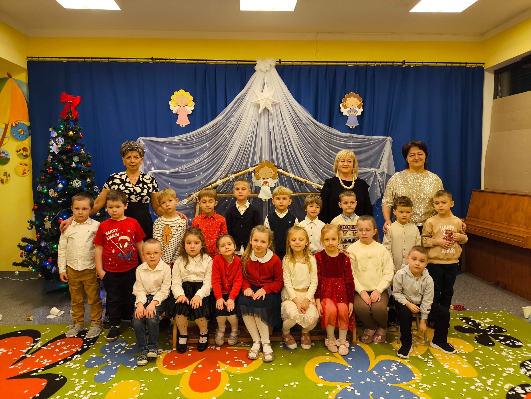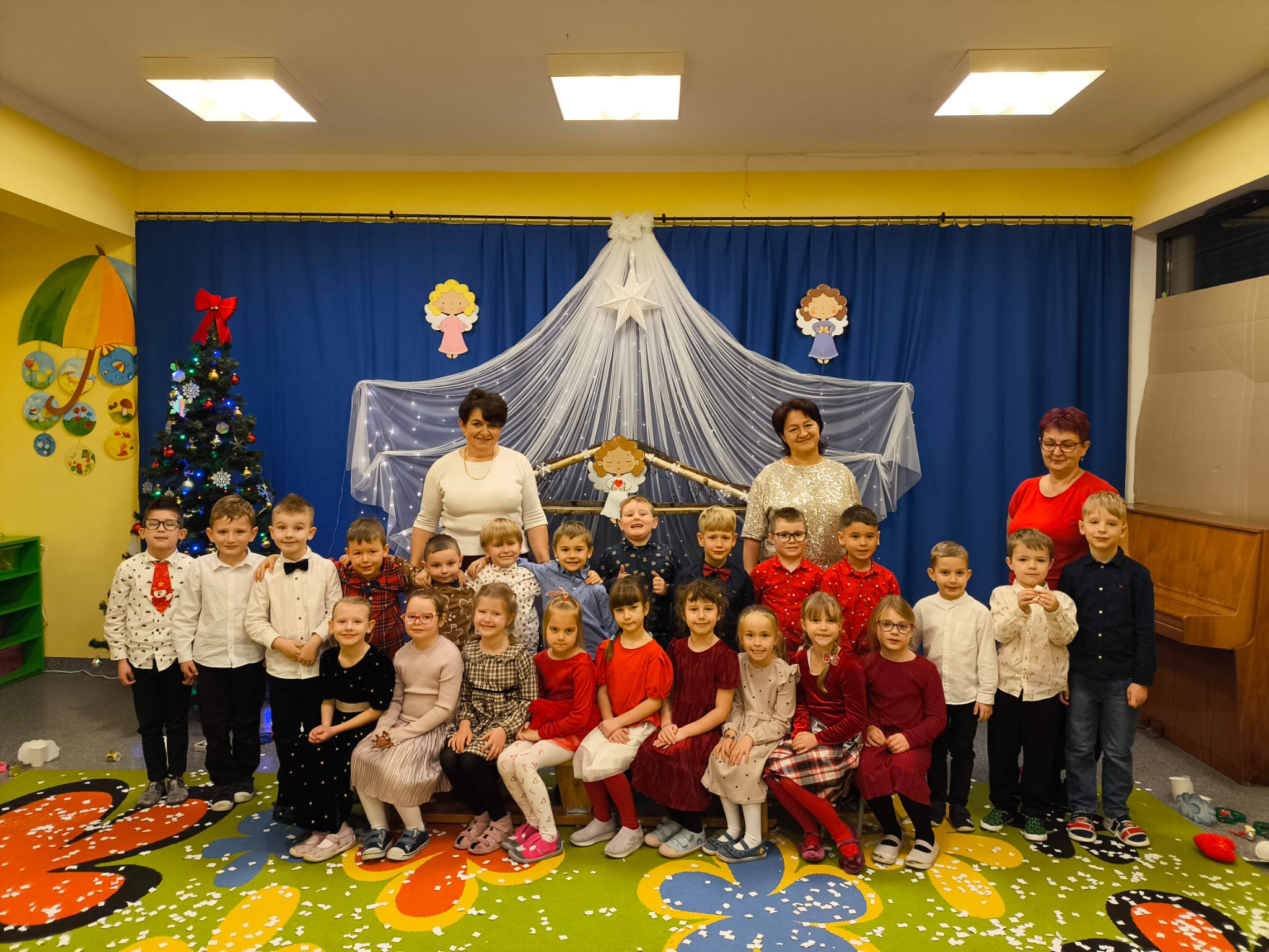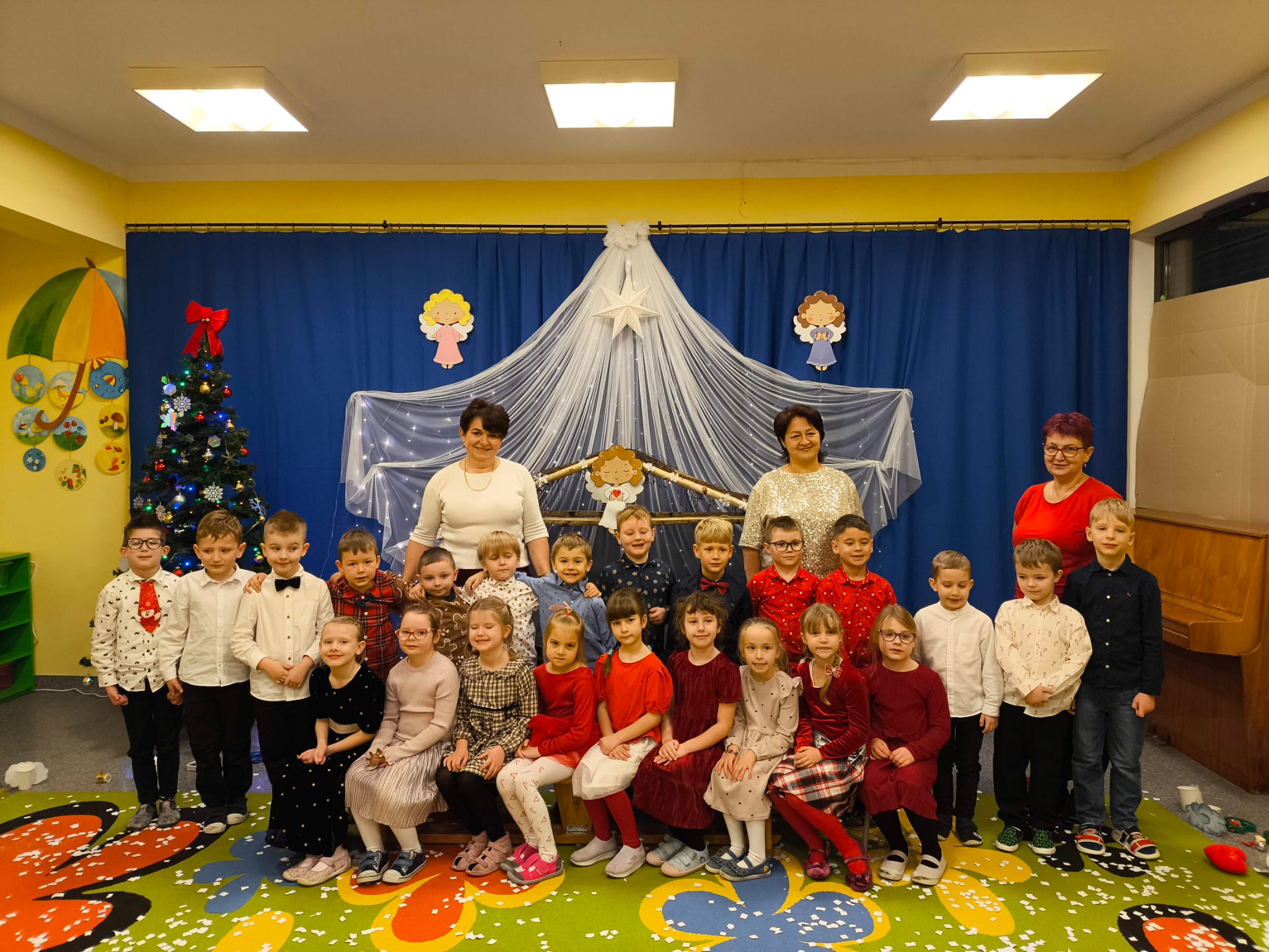 W naszym przedszkolu zapanowała wyjątkowa, świąteczna atmosfera. Jak co roku spotkaliśmy się wszyscy — dzieci, nauczyciele, pracownicy, aby wspólnie przeżyć Wigilię Przedszkolną, która stała się jedną z najpiękniejszych tradycji naszej społeczności.