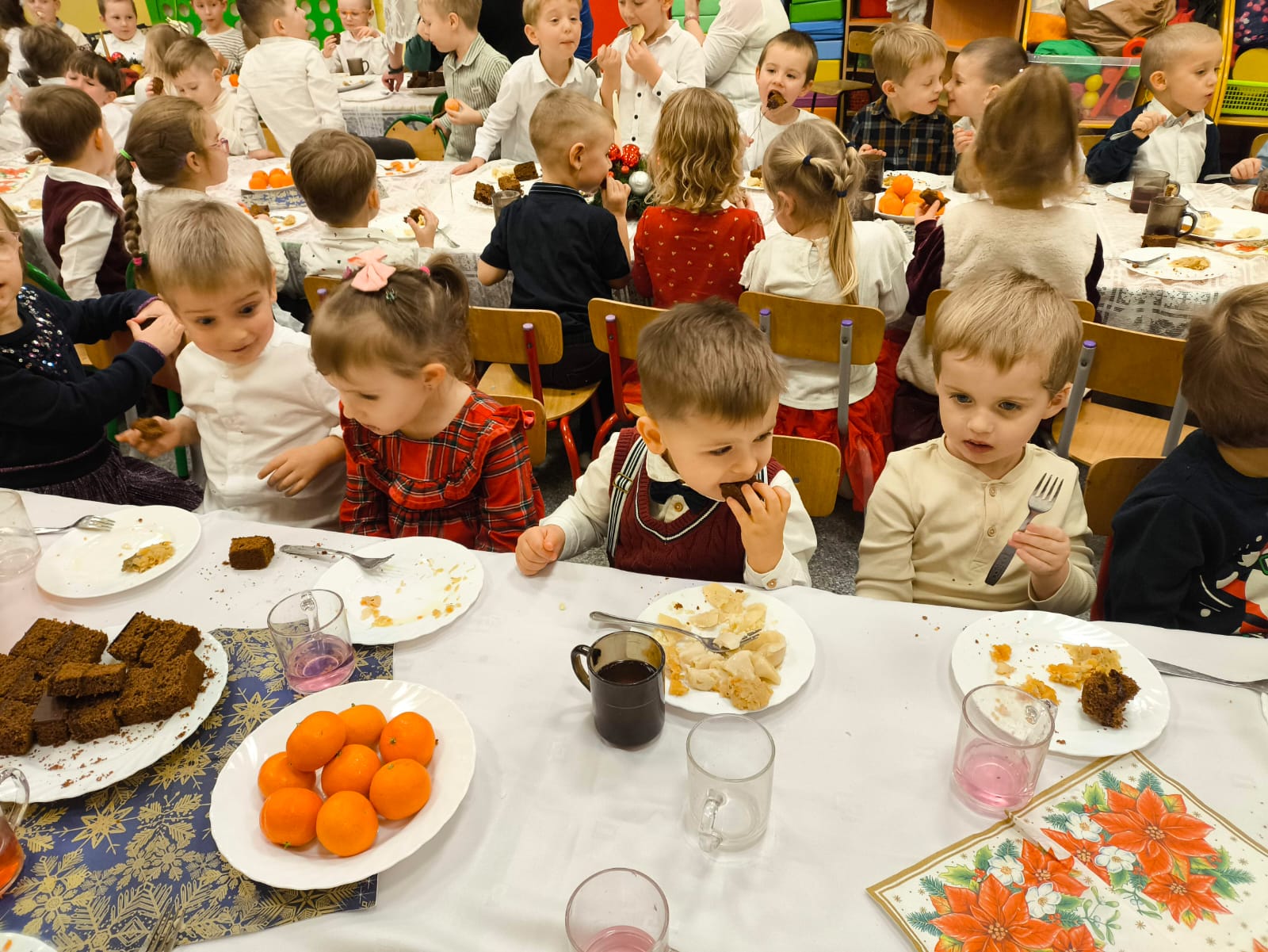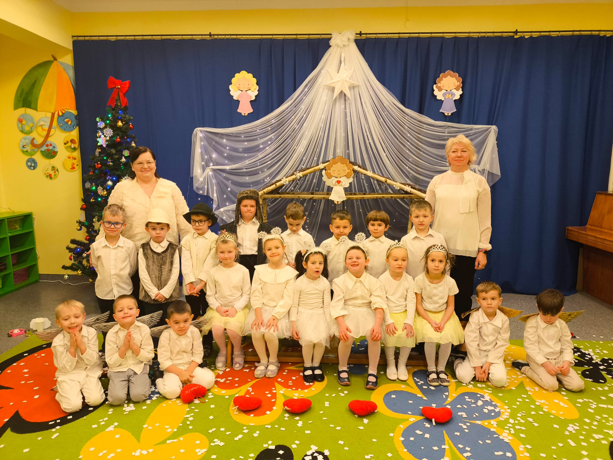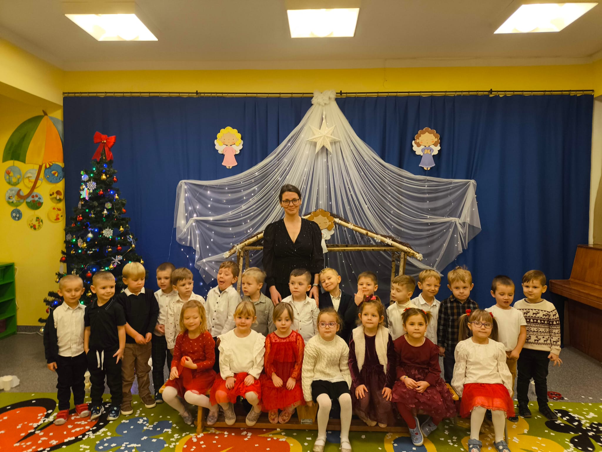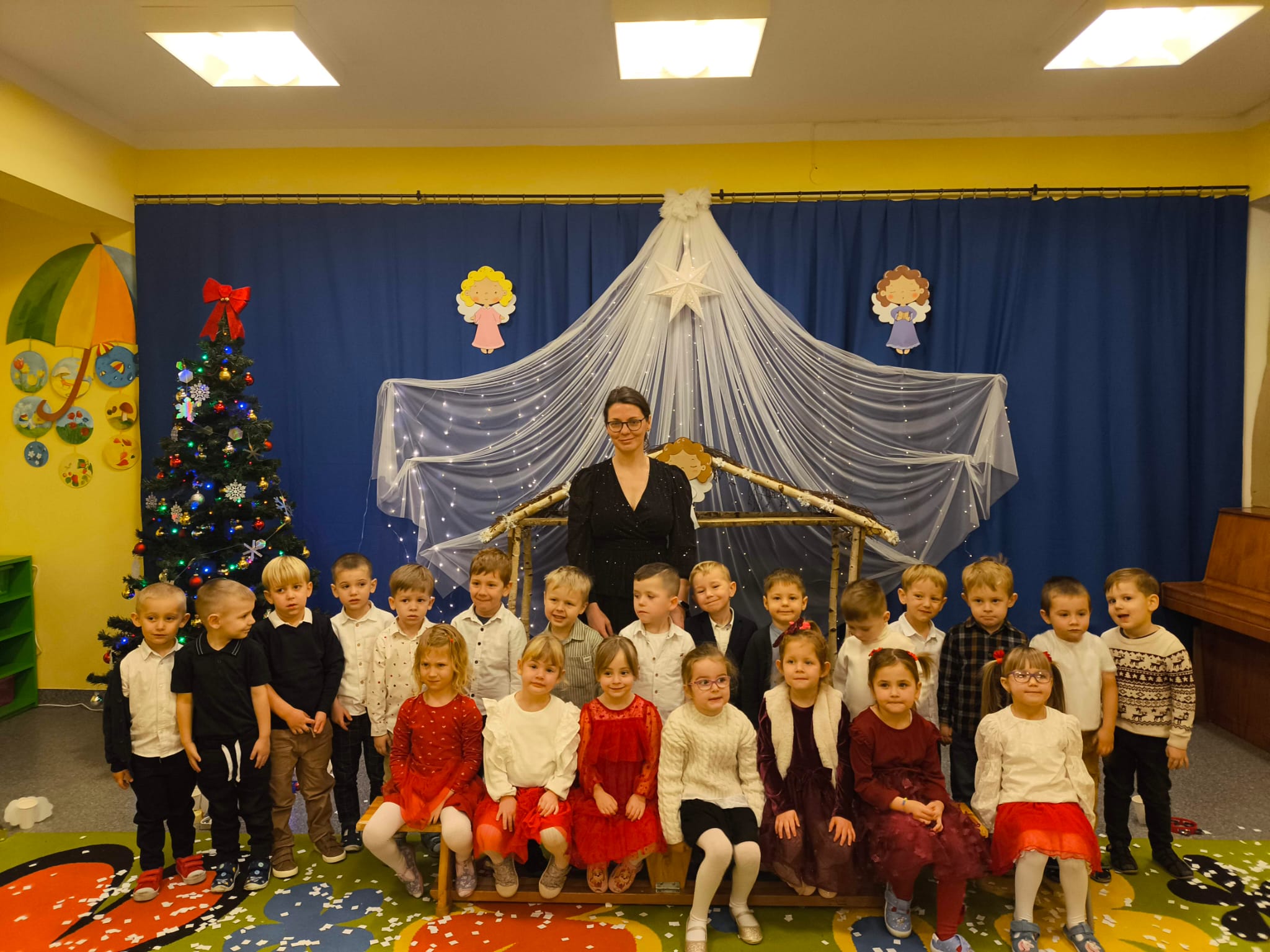 W naszym przedszkolu zapanowała wyjątkowa, świąteczna atmosfera. Jak co roku spotkaliśmy się wszyscy — dzieci, nauczyciele, pracownicy, aby wspólnie przeżyć Wigilię Przedszkolną, która stała się jedną z najpiękniejszych tradycji naszej społeczności.
