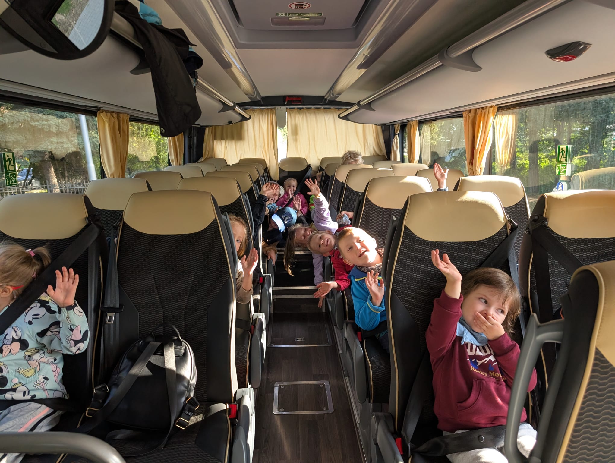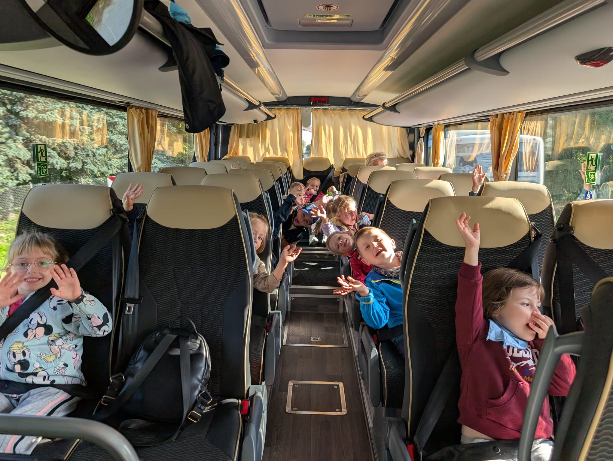 Już sama podróż autokarem okazała się dla dzieci ogromną atrakcją. Śpiewy, rozmowy i uśmiechy sprawiły, że od pierwszych chwil panowała niezwykle radosna atmosfera. Podróż pozwoliła dzieciom jeszcze bardziej się zintegrować i poczuć, że są prawdziwą drużyną.