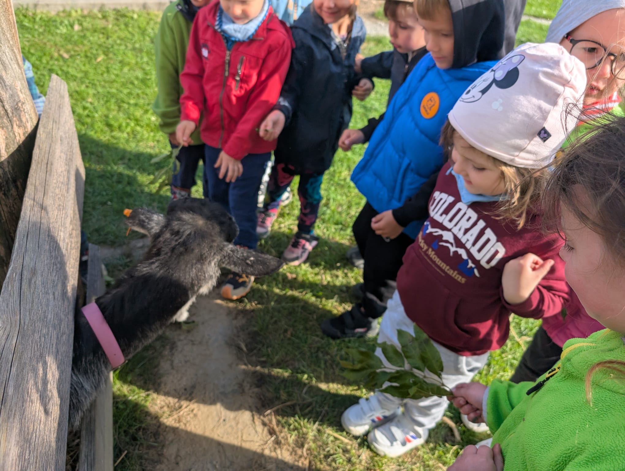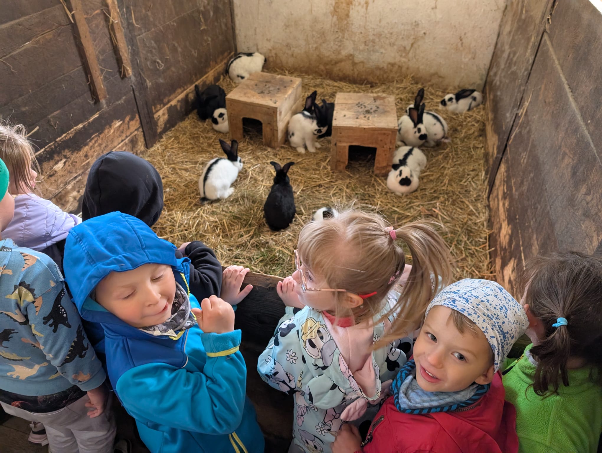 Na zakończenie dzieci odwiedziły zwierzątka w zagrodzie – kozy, konie, owce, kury i króliki. Możliwość bezpośredniego kontaktu ze zwierzętami była dla Żabek źródłem wielu pozytywnych emocji, uczyła troski i wrażliwości wobec przyrody.