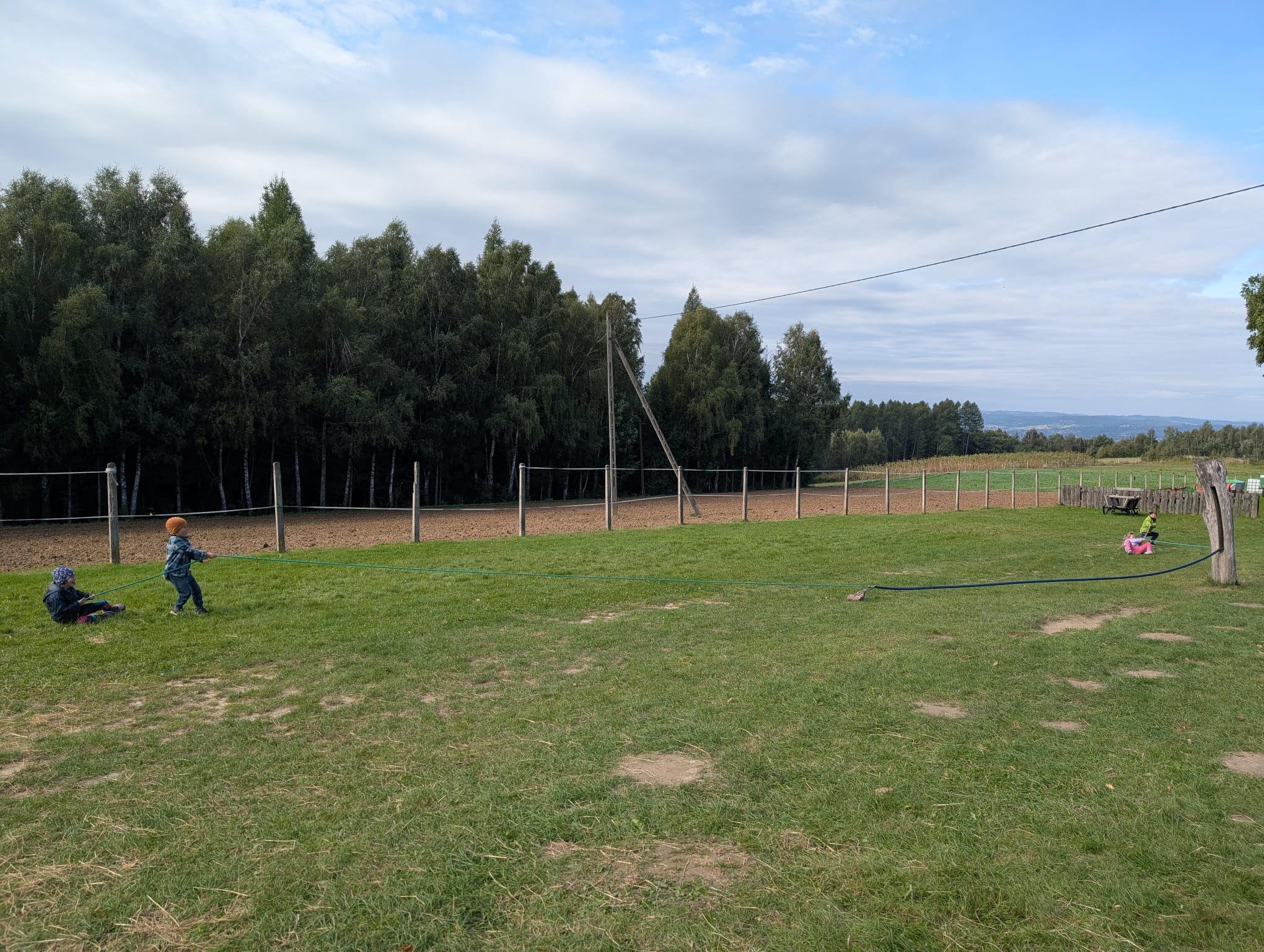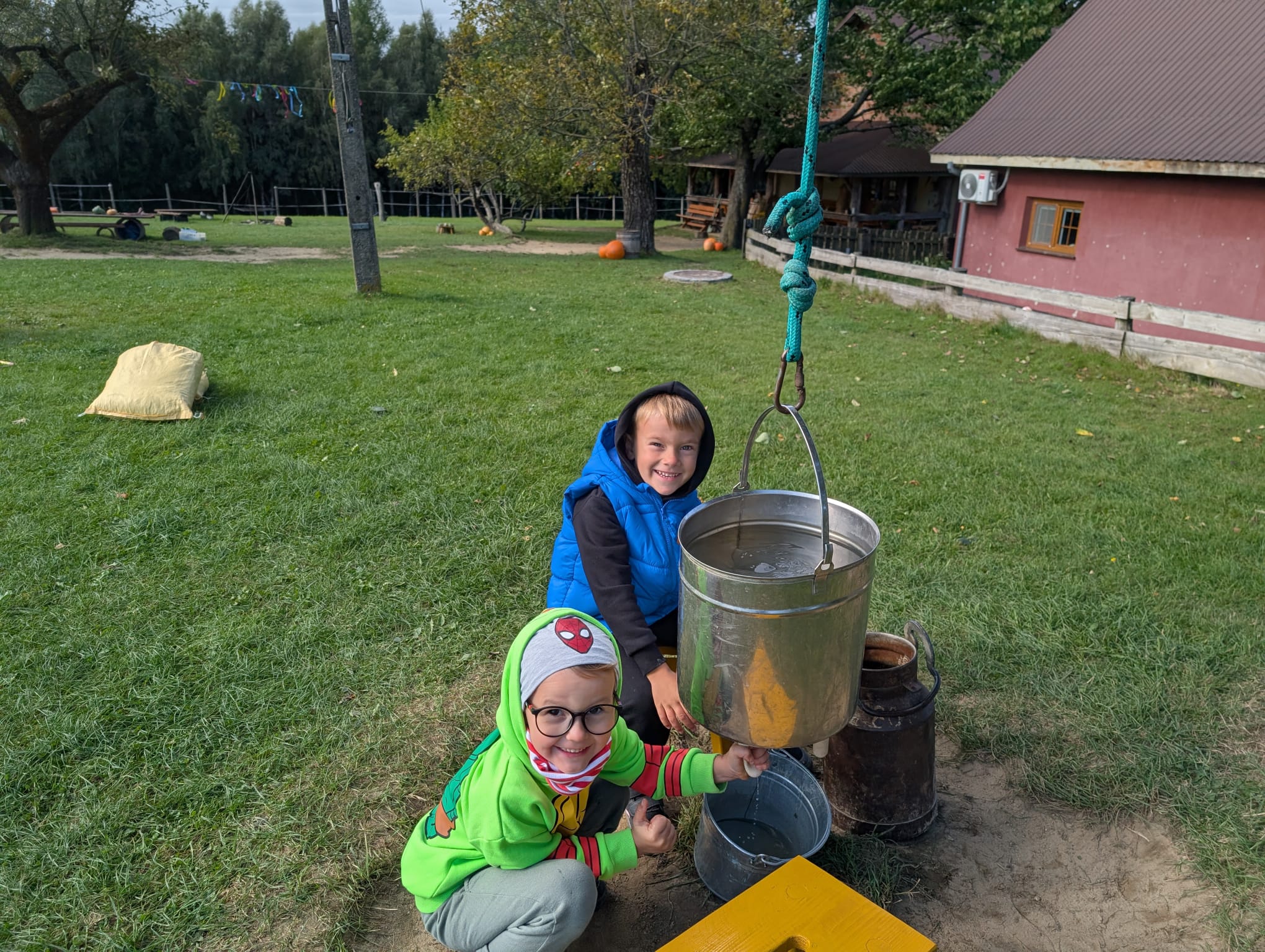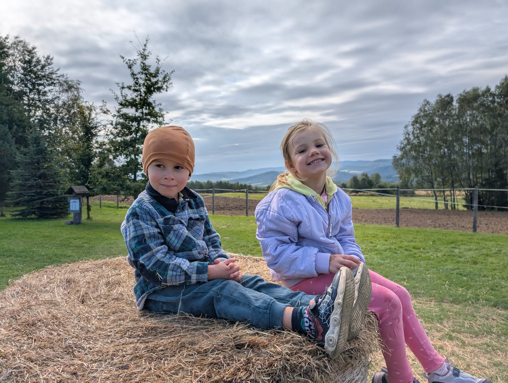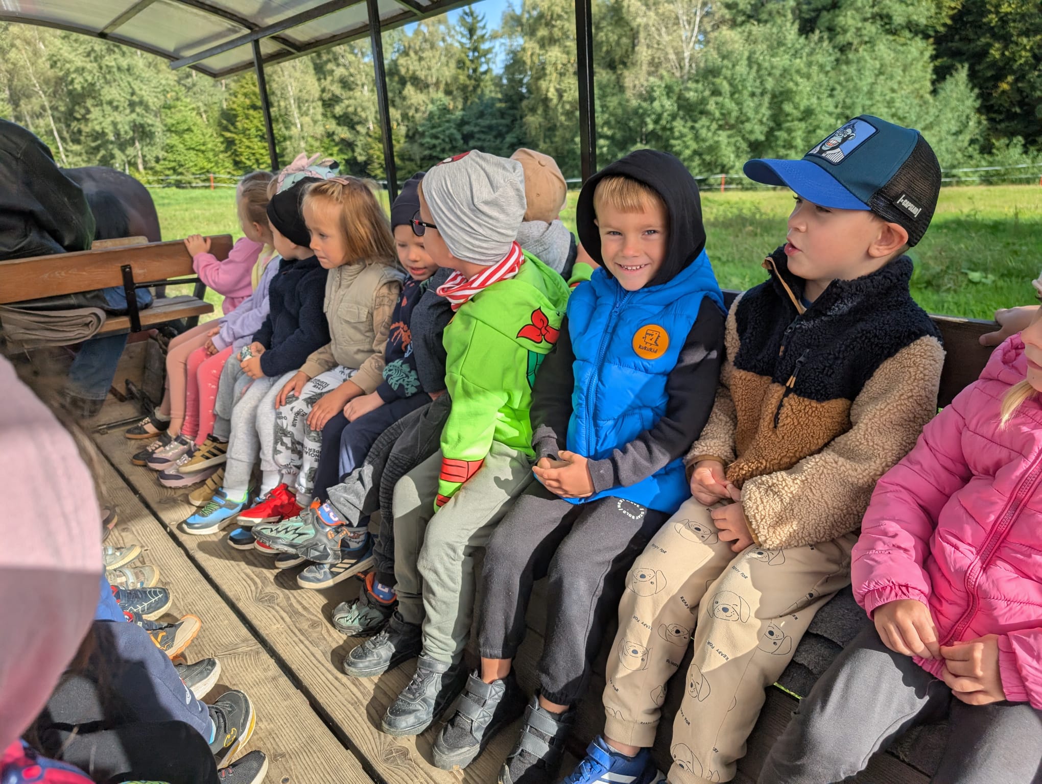 Jednym z najbardziej niezapomnianych momentów była jazda bryczką z Dziadziem Stasiem. Widok pięknych pól i łąk, spokojne tempo przejażdżki i dźwięk kopyt końskich sprawiły, że dzieci mogły poczuć wyjątkowy klimat wiejskiego życia.