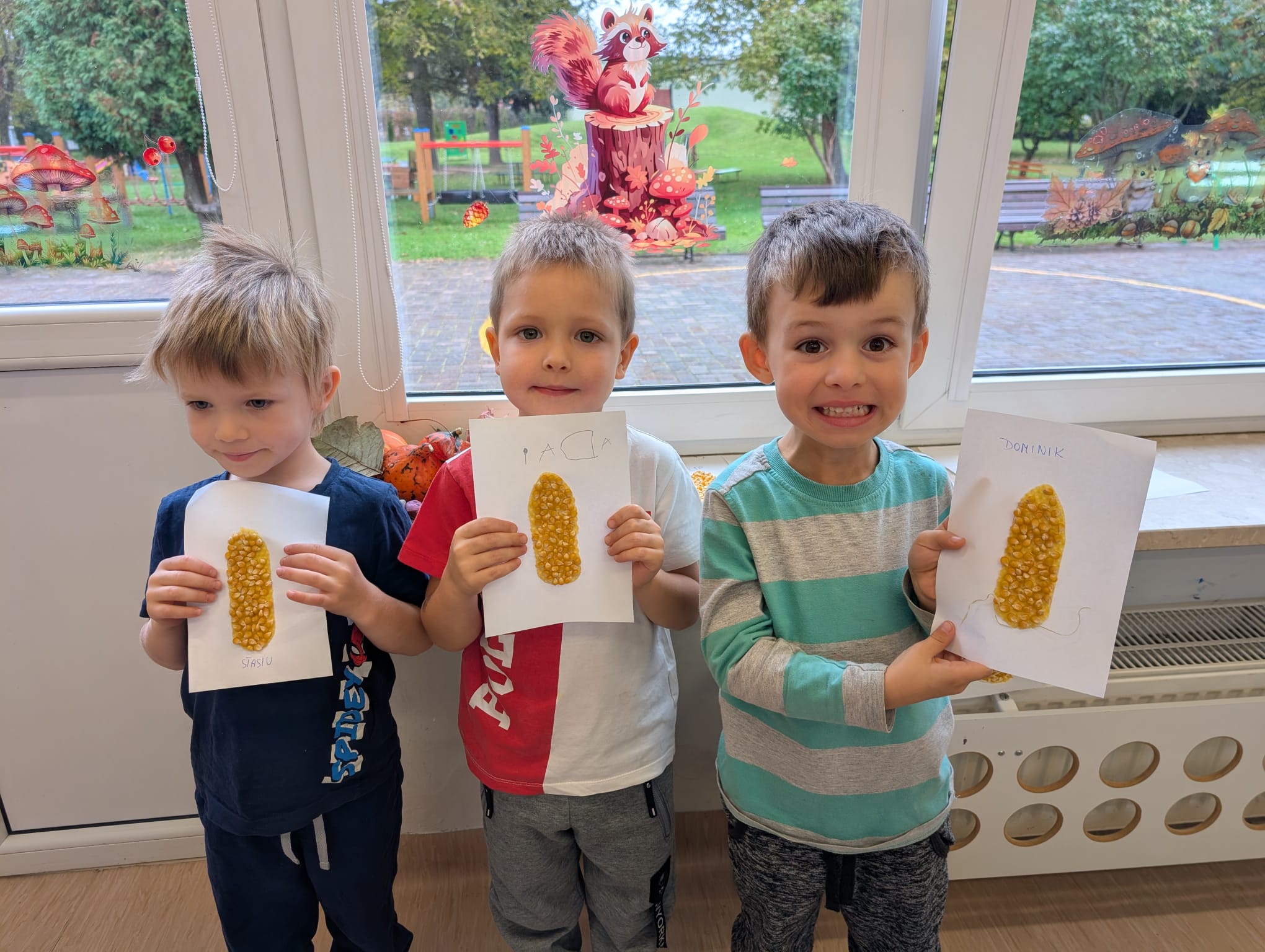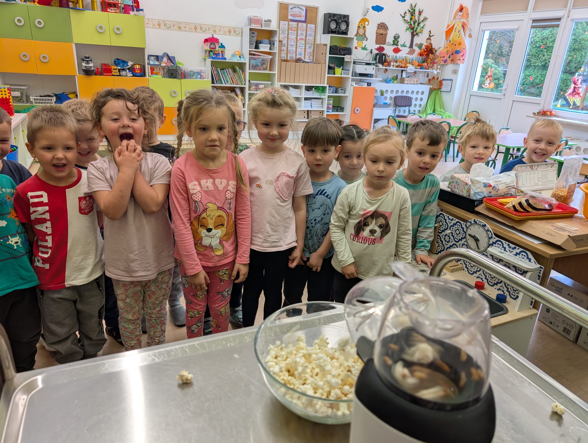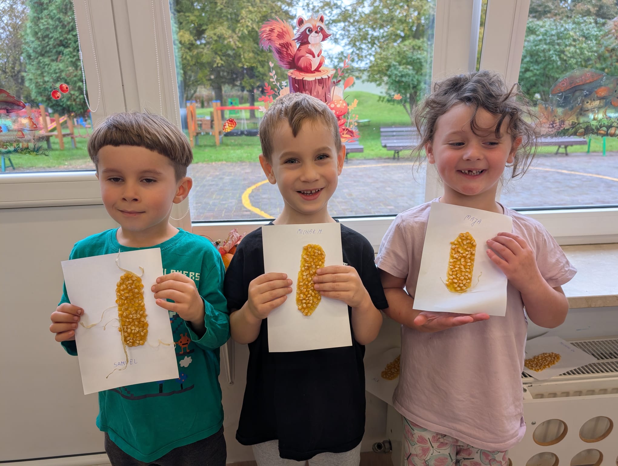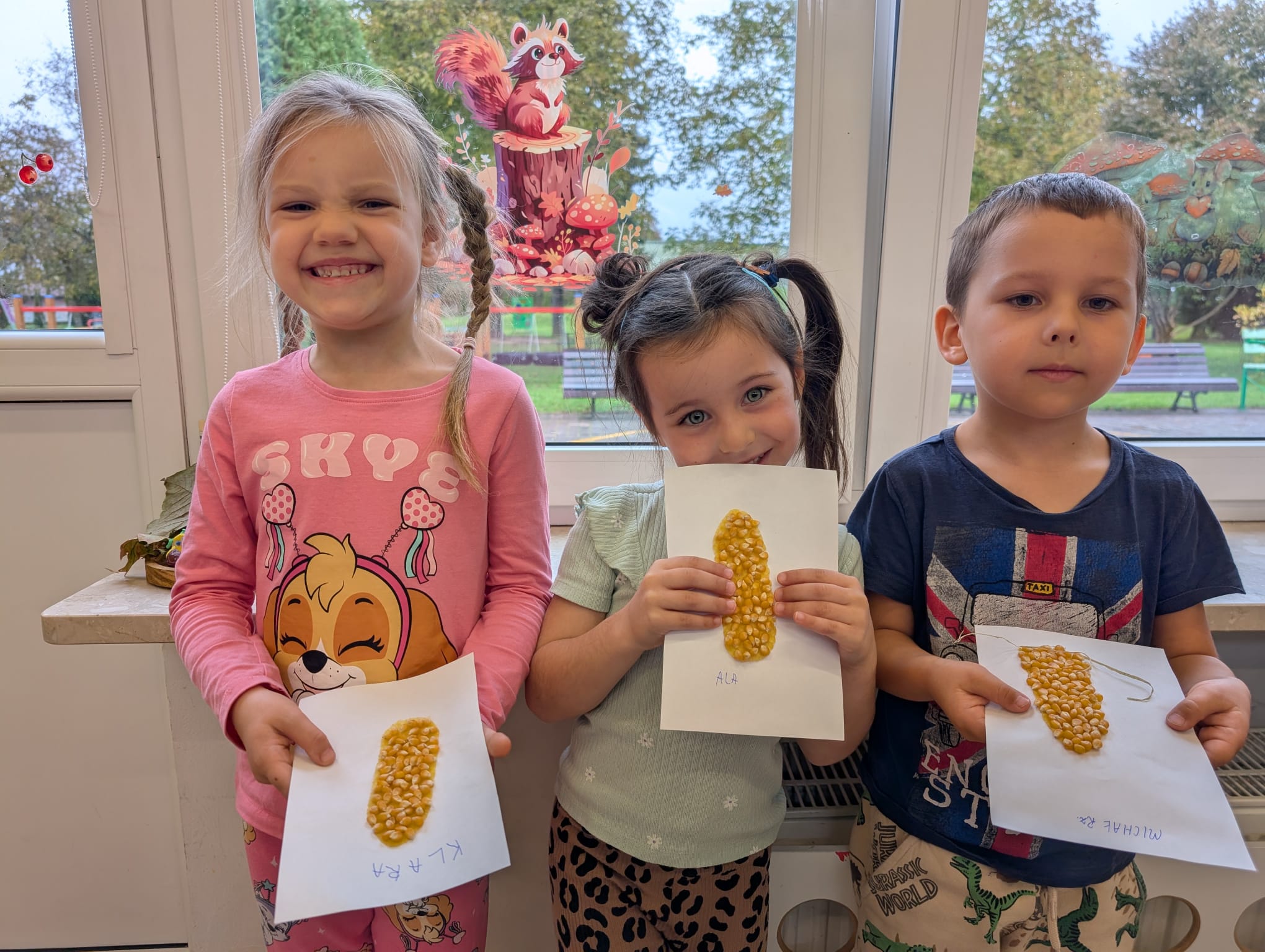 W minionym tygodniu grupa Żabek miała wyjątkowe zajęcia dydaktyczne z Panią Asią, która odbywa praktyki w naszym przedszkolu. Bohaterką tego dnia była... kukurydza! Dzieci miały okazję poznać to warzywo wszystkimi zmysłami – dotykały, wąchały, oglądały, a także dzieliły się swoimi doświadczeniami z domowej kuchni i ogrodu. W części techniczno-sensorycznej przedszkolaki wykonały niezwykłą pracę plastyczną – wyklejały ziarenkami kukurydzy przygotowaną powierzchnię z naturalnym woskiem pszczelim. Przy tej okazji dowiedziały się, skąd pochodzi taki wosk i jak pracowite są pszczoły, by go wytworzyć! Dzieci z ogromną precyzją wypełniały każdą wolną przestrzeń, ćwicząc koncentrację, cierpliwość oraz motorykę małą i precyzyjną sprawność dłoni – tak ważną w przygotowaniu do nauki pisania. Na zakończenie zajęć czekała na Żabki niespodzianka – maszyna do popcornu! Dzieci z zaciekawieniem obserwowały proces prażenia ziaren, a potem z wielką radością degustowały świeżo przygotowany popcorn. Było pysznie, pachnąco i bardzo edukacyjnie! Takie zajęcia to nie tylko nauka, ale też radość odkrywania świata wszystkimi zmysłami!