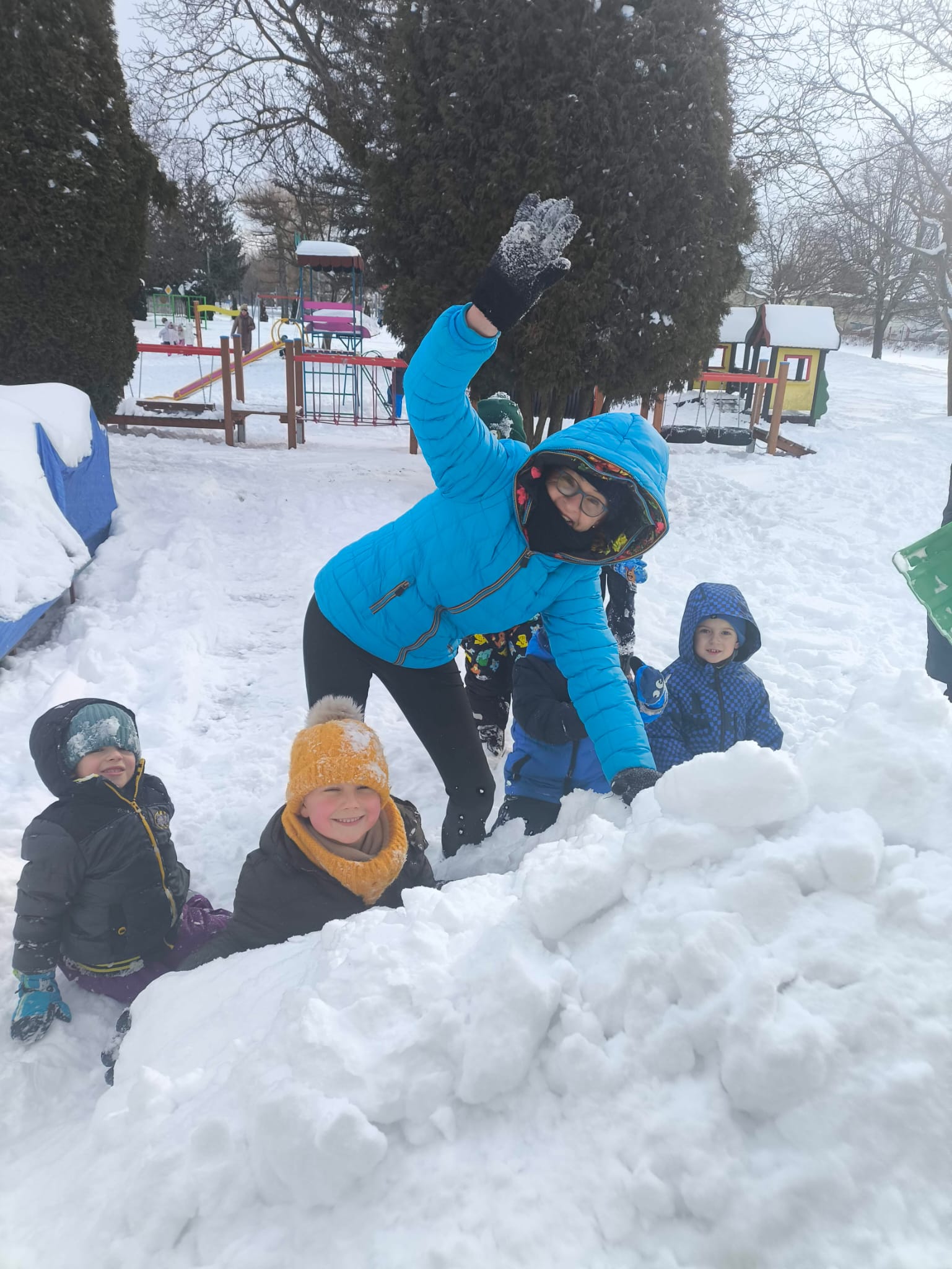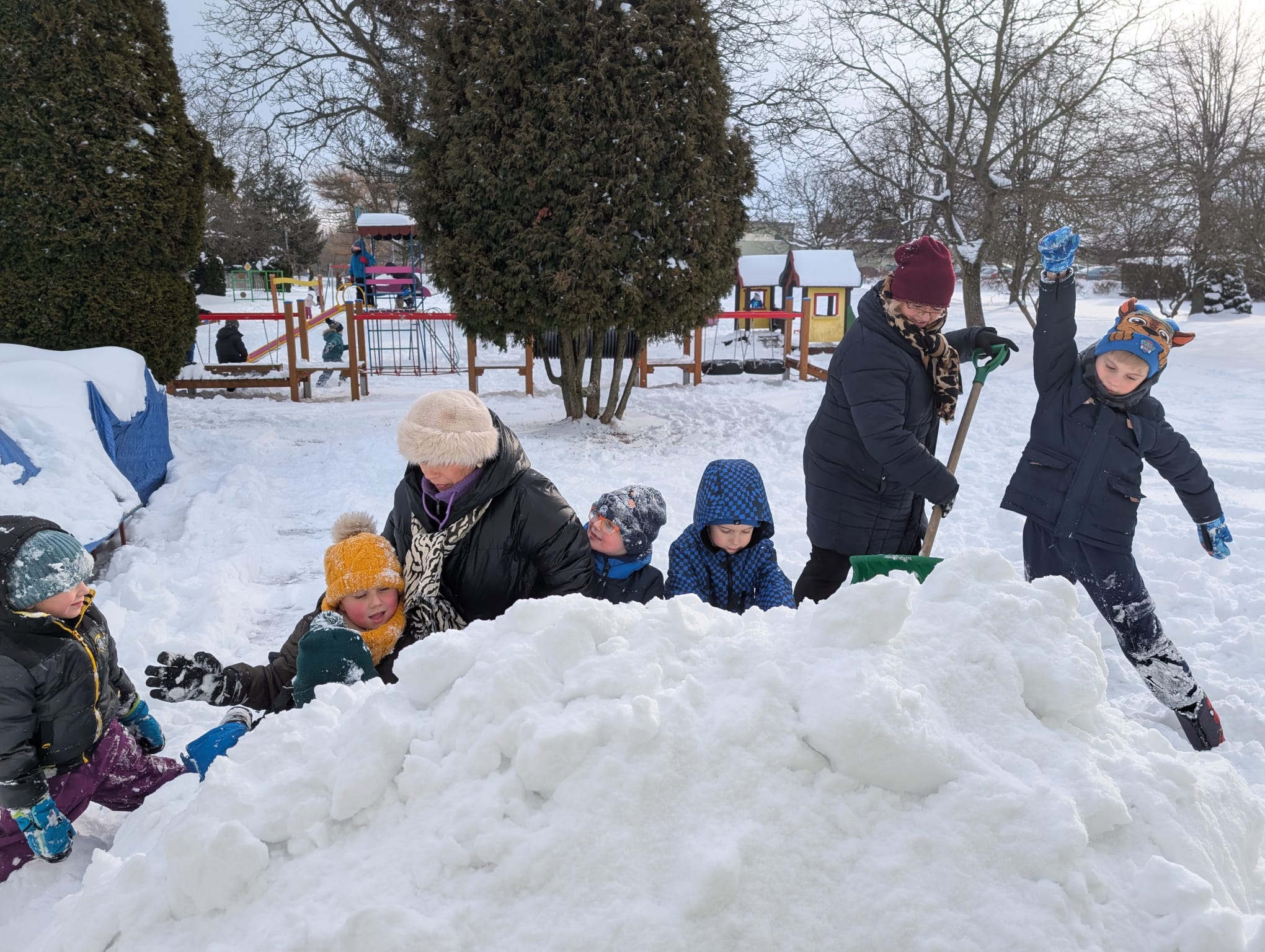 Śnieg zawsze wywołuje wśród dzieci ogromną radość, a zimowa aura sprzyja wspólnym aktywnościom na świeżym powietrzu. Przedszkolaki z entuzjazmem korzystają z uroków zimy, ciesząc się możliwością ruchu, kreatywnej zabawy i odkrywania nowych doświadczeń w białej scenerii.